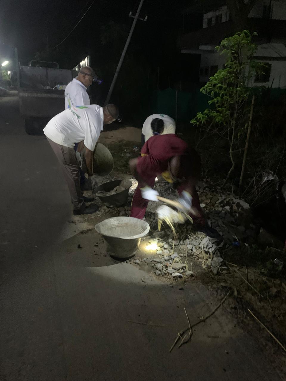 నిన్న జాతీయ రహదారి వికృతాలను సరిజేసిన వాలంటీర్ల టీమ్ ఈ పూట గంగులవారిపాలెం/ భవఘ్ని నగర్ల రోడ్డు మార్జిన్ గుంటల్ని చక్కబెట్టే పని చేపట్టింది. ఆ గుంటలు వర్షాలకు నీళ్లు పెరిగి, భారీ వాహనాల వల్ల రోడ్డు దెబ్బతినే పరిస్థితిని పసిగట్టిన కార్యకర్తలు SBI దగ్గర రాతిముక్కల రద్దును చూసి, ఉడత్తు బాబు గారి అనుమతితో ఉచితంగా ఆ గుట్టను ట్రక్కులో నింపుకొని, ఆ లోపాల్ని సరిజేయడమే నేటి పని!