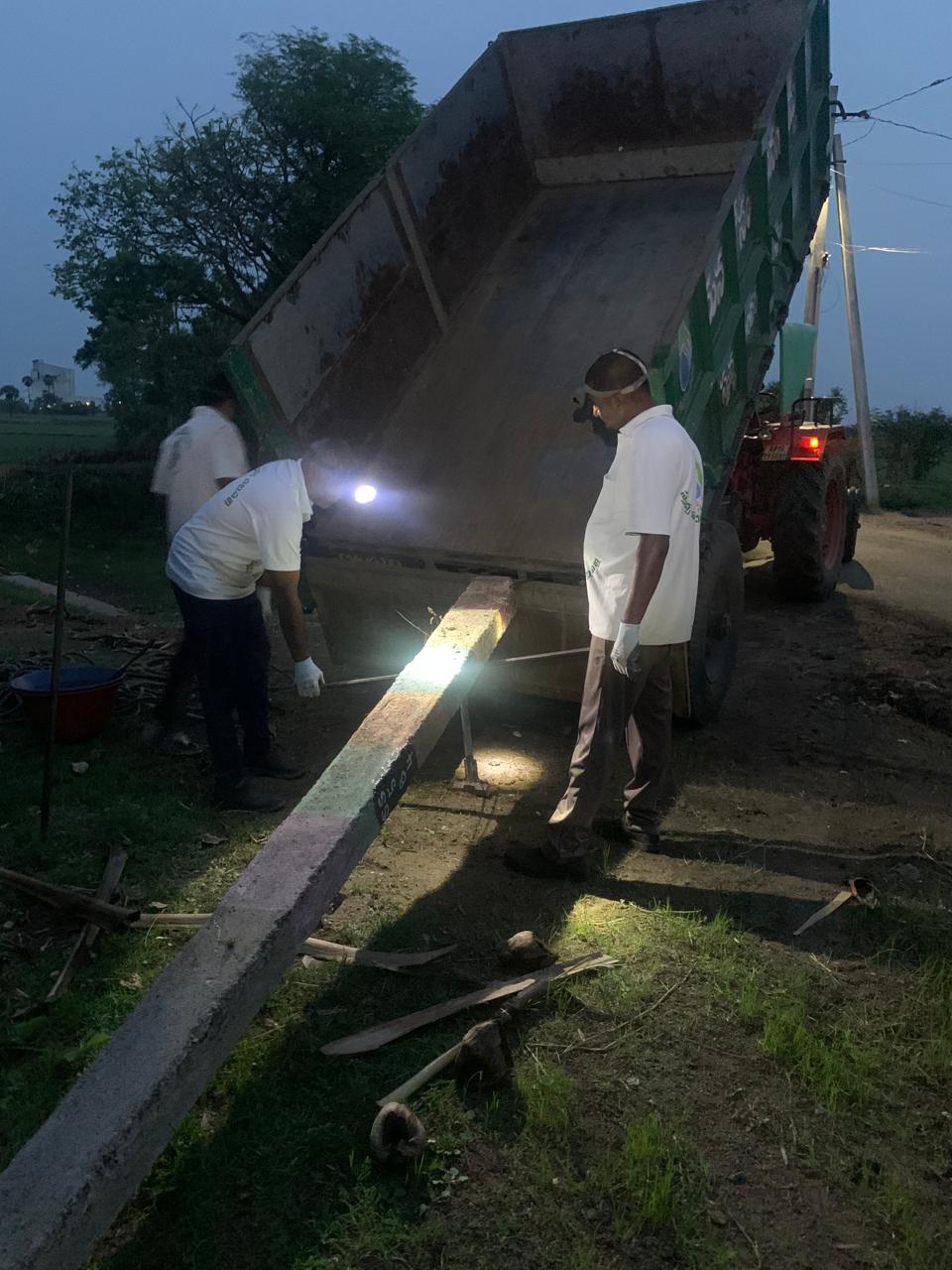 వాళ్లు నలుగురే కావచ్చు – అది టన్నున్నర బరువైన స్తంభమే కావచ్చు – ½ గంటలో కావలసిన పని 2 గంటలు పట్టొచ్చుగాక – సడలని పట్టుదలతో దాన్ని ట్రాక్టరు సాయంతో గంగులవారిపాలెం – బండ్రేవుకోడు వంతెన దగ్గరకు చేర్చడమూ, రోడ్డువార సర్దడమూ చేయగలిగారు.
