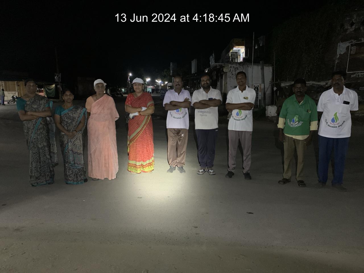 అనగా జూన్ మాసపు రెండో గురువారం – 13 వ తేదీ వేకువ 4.18 కే వీధి పనులు మొదలైనవి. అప్పుడు 10 మందితో నాగాయలంక రోడ్డులో ప్రారంభమై, మరో 14 మంది వచ్చి కలిసి, వెరసి 24 మంది 6.05 వరకూ నెరవేర్చుకొన్న కర్తవ్యాల పట్టిక :