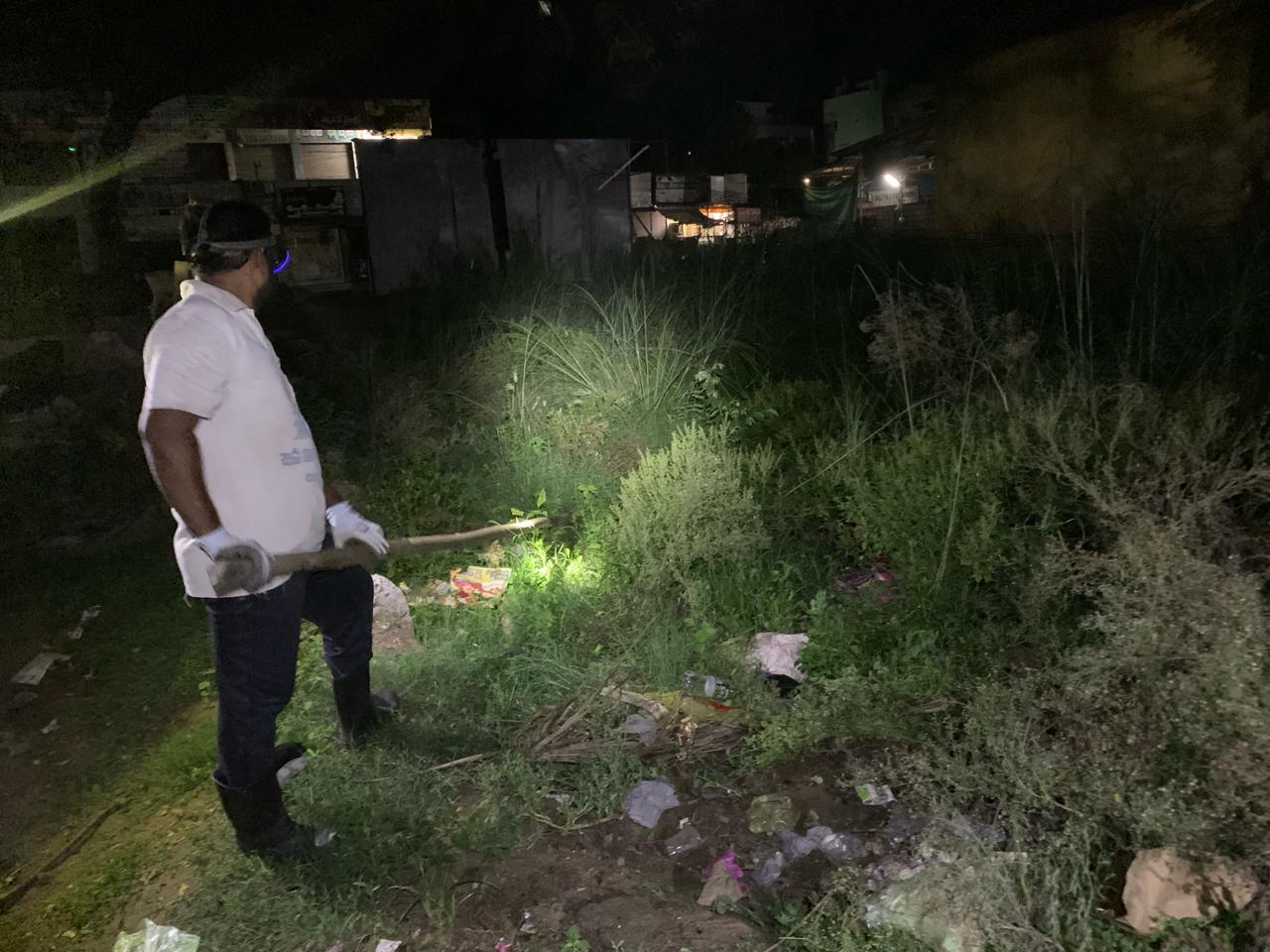 ఈ వేకువ 100 నిముషాల పాటు సదరు ఎగుడుదిగుడు స్థలమే 15 మంది కార్యకర్తల చేతి కత్తులకూ, దంతెలకూ ఊపిరి సలపని పని కల్పించిన ఆరేడు సెంట్లు!