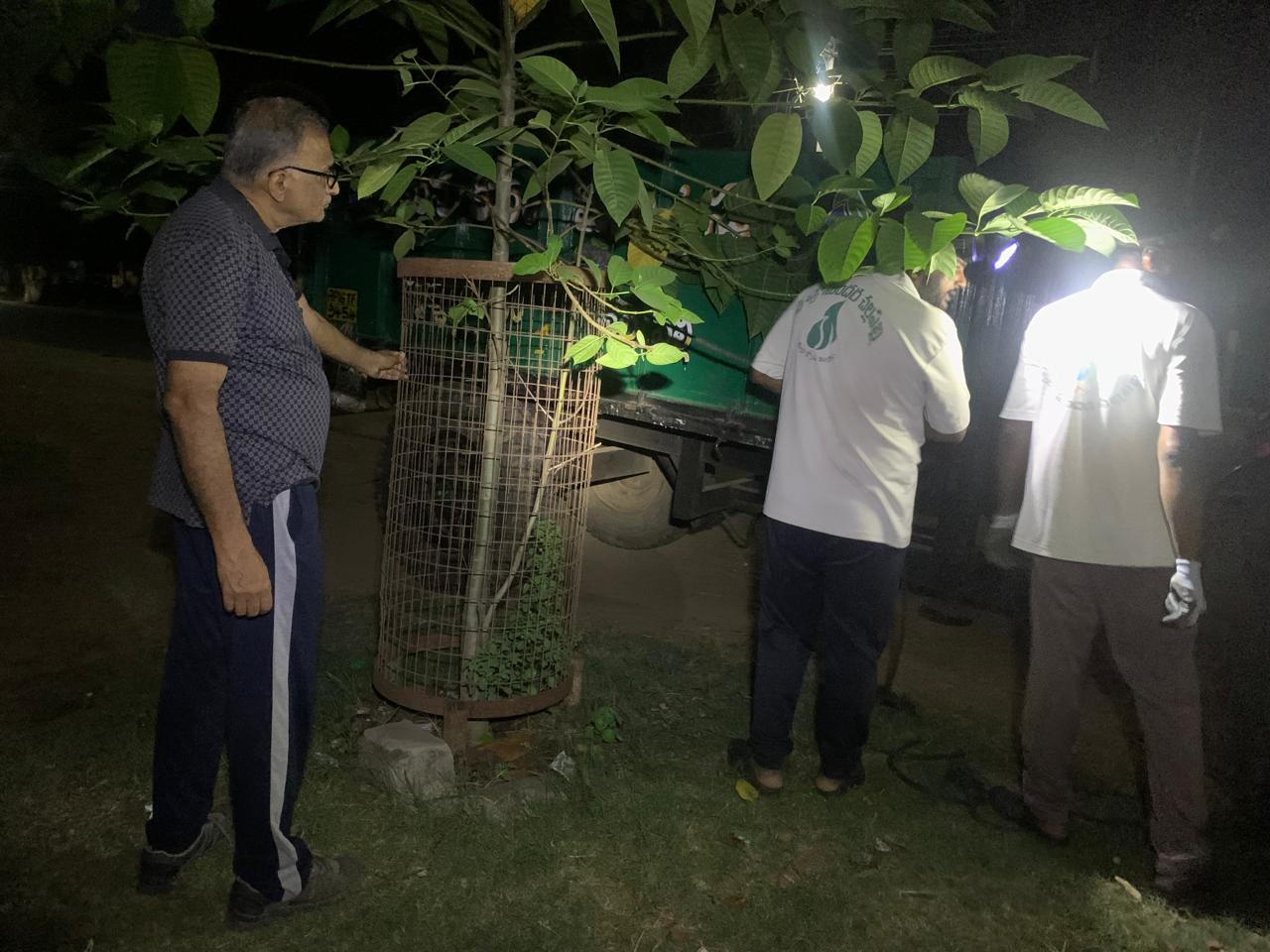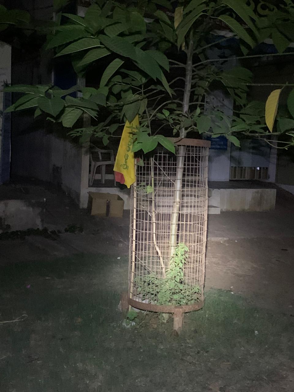 వాటికతీతంగా ఈ ఉదయం యదావిధిగా జరిగిన శ్రమ సంగతులు : ముందుగా - జల్లూరి ప్రసాదు గారి ఇంటి ఎదుట – బందరు రోడ్డులో రెండు కదంబ వృక్షాలకు కట్టిన ఇనుప ఊచల గార్డుల్ని జాగ్రత్తగా తొలగించాక -