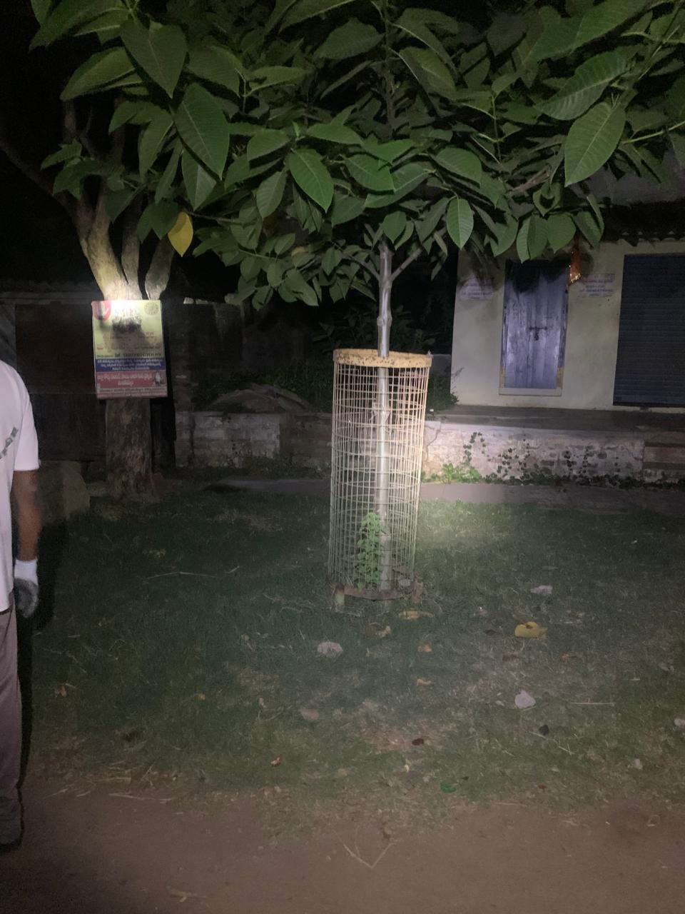 గస్తీ గది నుండి గంగులవారిపాలెం వీధి హరిత సుందరీకరణ పనికి దిగారు. రోడ్డుకు తూర్పున తప్పించక తప్పని కొన్ని చెట్ల కొమ్మల్నీ, పడమర ప్రక్కన మరీ ఎత్తుగా పెరిగిన వేప చెట్టు కొమ్మల్నీ - అటు అందం చెడకుండానూ – ఇటు విద్యుత్ ప్రసారానికంతరాయం కలుగకుండానూ తప్పించారు.