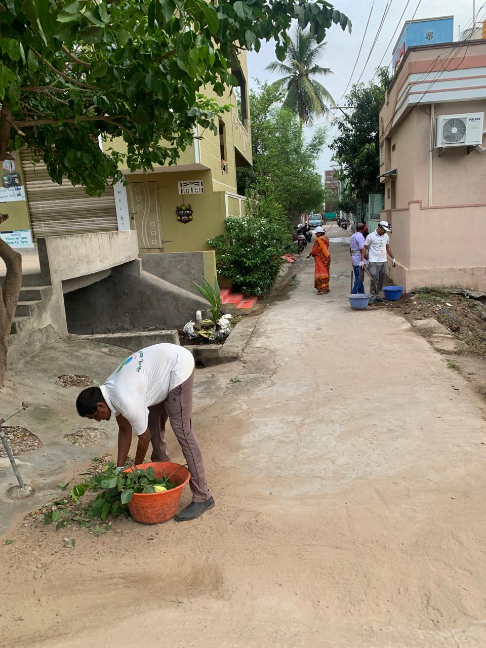సదరు శ్రమఘట్టం గురువారం వేకువ సుమారు 2 గంటల పాటు – సాగర్ టాకీసు బైపాస్ వీధికి ఉత్తర - దక్షిణాలుగా జరిగింది. దానికర్తలు 26 మంది. ఇందులో పారల్తో మట్టి దిబ్బల్ని కుమ్మేసిన ముగ్గురూ, కేవలం దంతెలు మాత్రం వాడుకొన్న నలుగురూ, కత్తికీ - కత్తెరకూ పని చెప్పిన వారూ, చీపుళ్ల మీద ఆధారపడిన నలుగురు మహిళామణులూ!