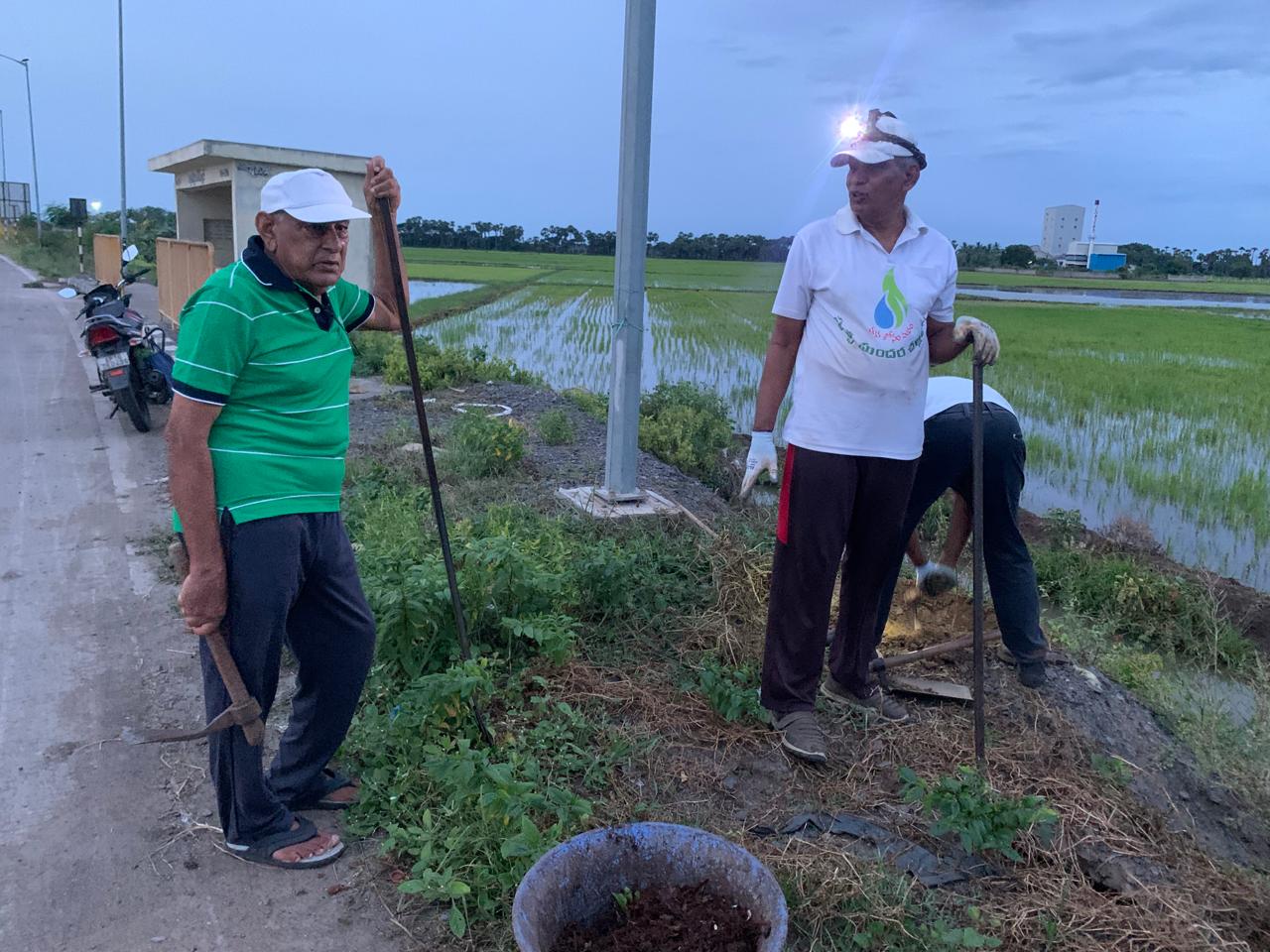 ఈ వేకువ కూడ NH 216 మీద – పెదకళ్ళేపల్లి క్రాస్ రోడ్డు సమీపాననే 2 డజన్ల మంది సుమ – హరితీకరణ ప్రయత్నం! అందుకు నిన్నటి రాత్రీ – ఈ వేకువ కార్యకర్తల సన్నద్ధం!