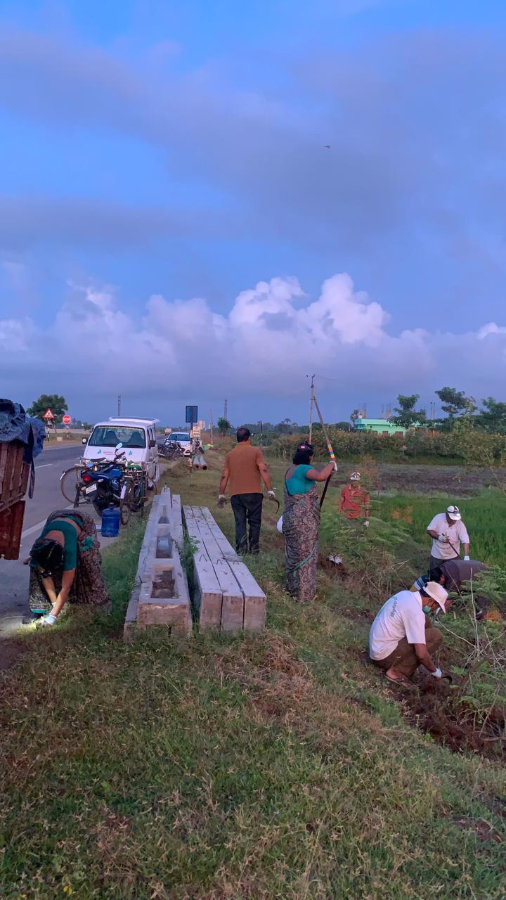 రహదారికి ఉత్తర భాగంలో గునపాలతో కొందరూ, పారలతో నాలుగురైదుగురు, రైల్వే పారలతో గడ్డి చెక్కిన వారూ, ఇద్దరో ముగ్గురో గాని రహదారిని చీపుళ్ళతో శుభ్రపరచిన వారూ తప్ప సోమరితనం ఎక్కడా ఎవరిలోనూ కనిపించలేదు!
