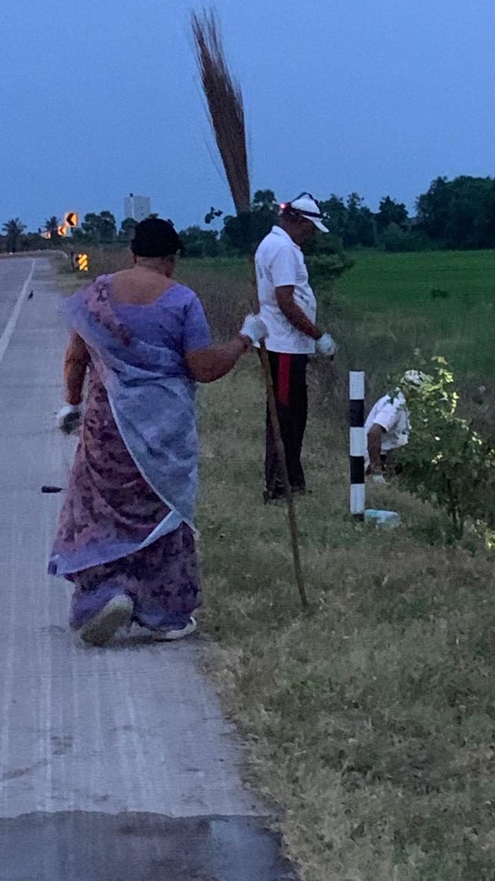 ఇద్దరో-ముగ్గురో నేటి పని స్థలమంతా చీపుళ్లతో ఊడ్చి-సిమెంటు రోడ్డును ప్లాస్టిక్ రహితం చేశారు!