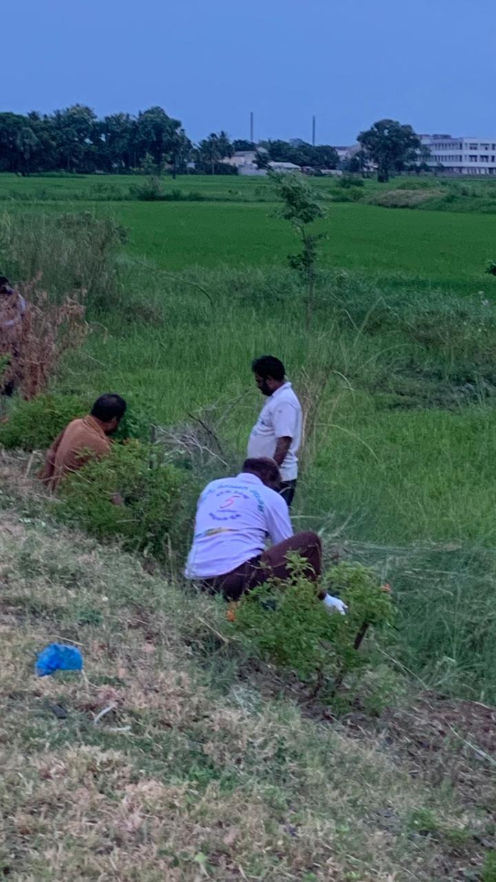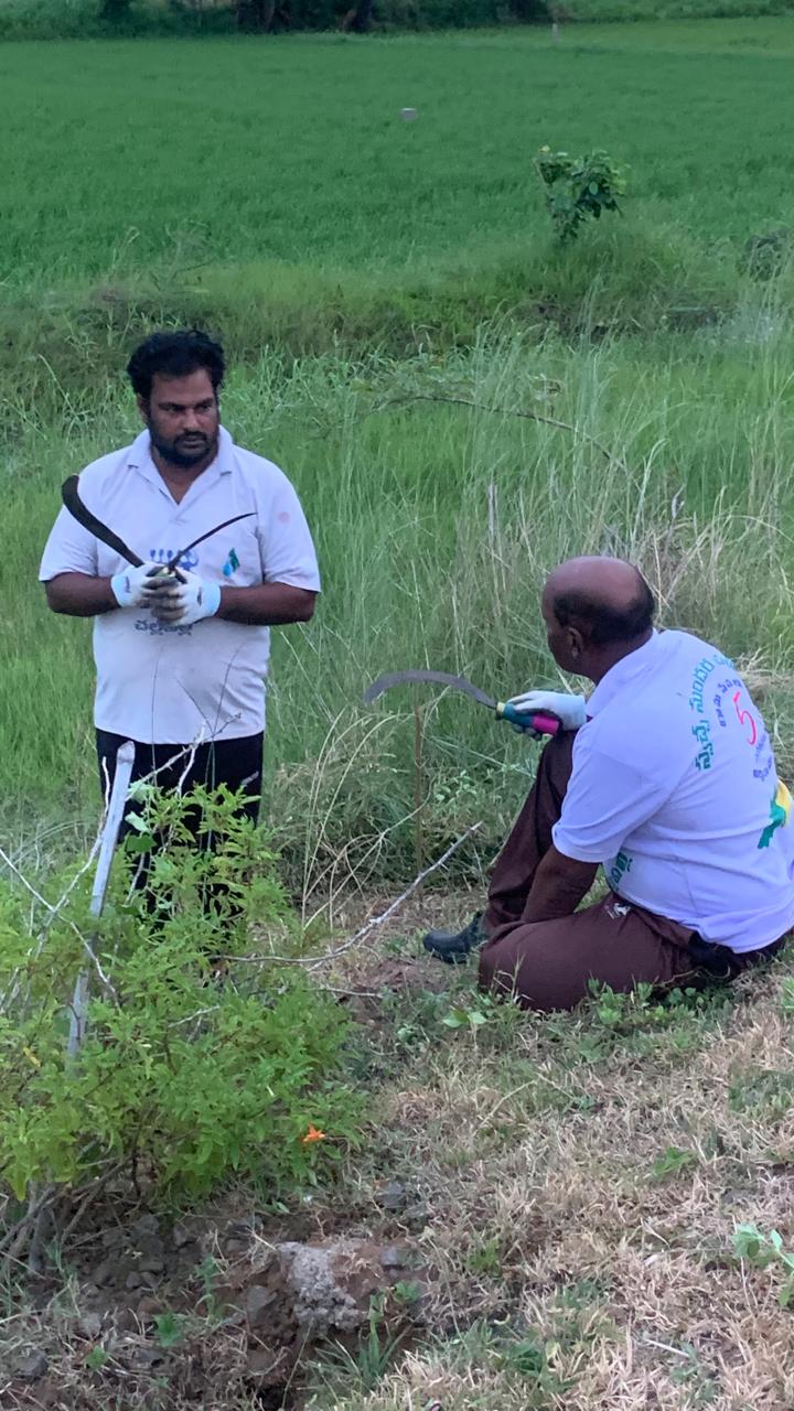 అలుపెరుగని శ్రామికులు 22 మంది. రహదారికి ఉత్తరపుటంచున పని స్థలం నిడివి 150 గజాల మేర! పని స్వభావం - 98 పూల - పండ్ల మొక్కలు నాటేందుకు గాను ఎగుడు దిగుడు నేలను సిద్ధపరచుట!