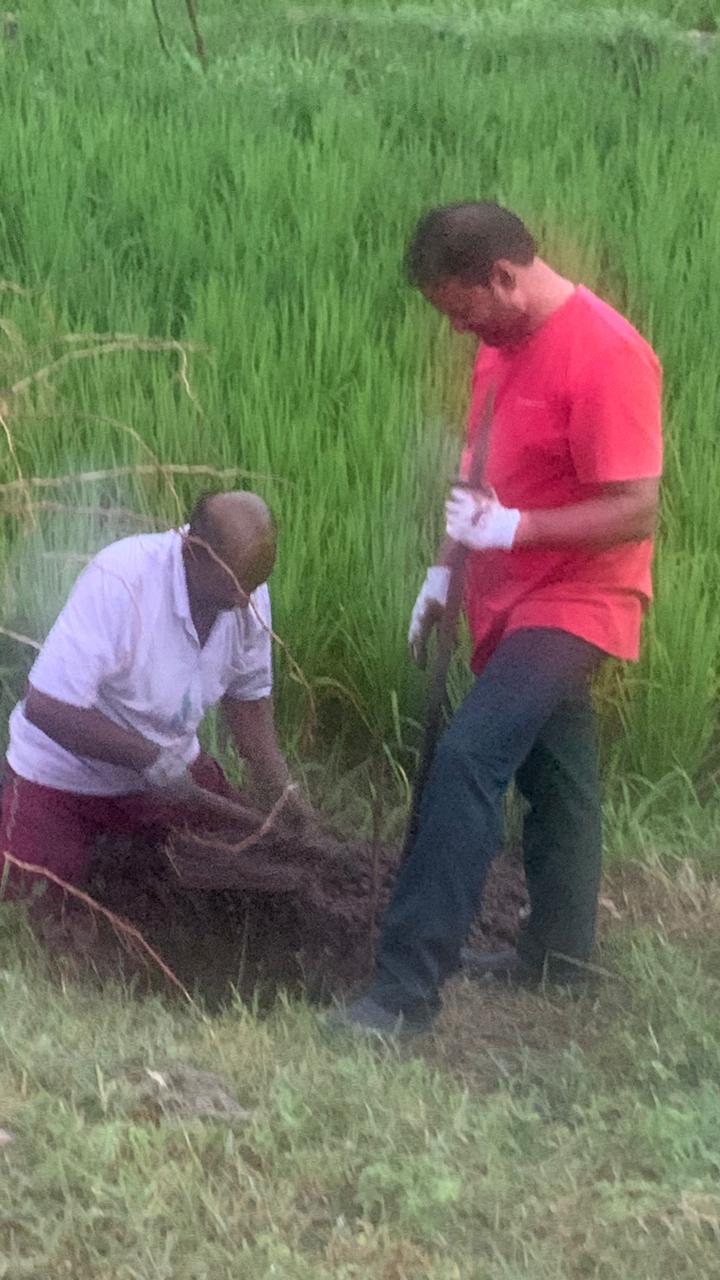 నలుగురు కార్యకర్తలు బండ్రేవుకోడు కాల్వ ఉత్తరాన వాహనదారుల్ని ఇబ్బంది పెట్టుతున్న రోడ్డు పైకి పెరిగి, వంగిన, గద్ద గోరు మొక్కల్ని సరిజేసేందుకు వెళ్లగా - ఇక్కడ మిగిలిన నలుగురు+ఒక్కరితోనే 22 పాదులు త్రవ్వారు. (అక్కడ జర్రున కాలు జారి ఒక BSNL మహాశయుడు బురదలో పడి లేవడం- వేఱే కథ!)