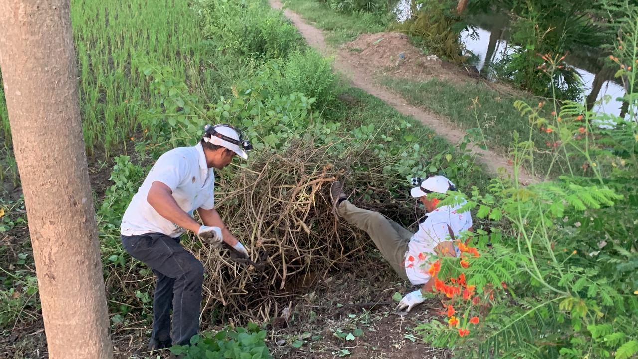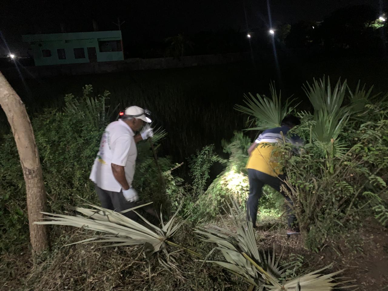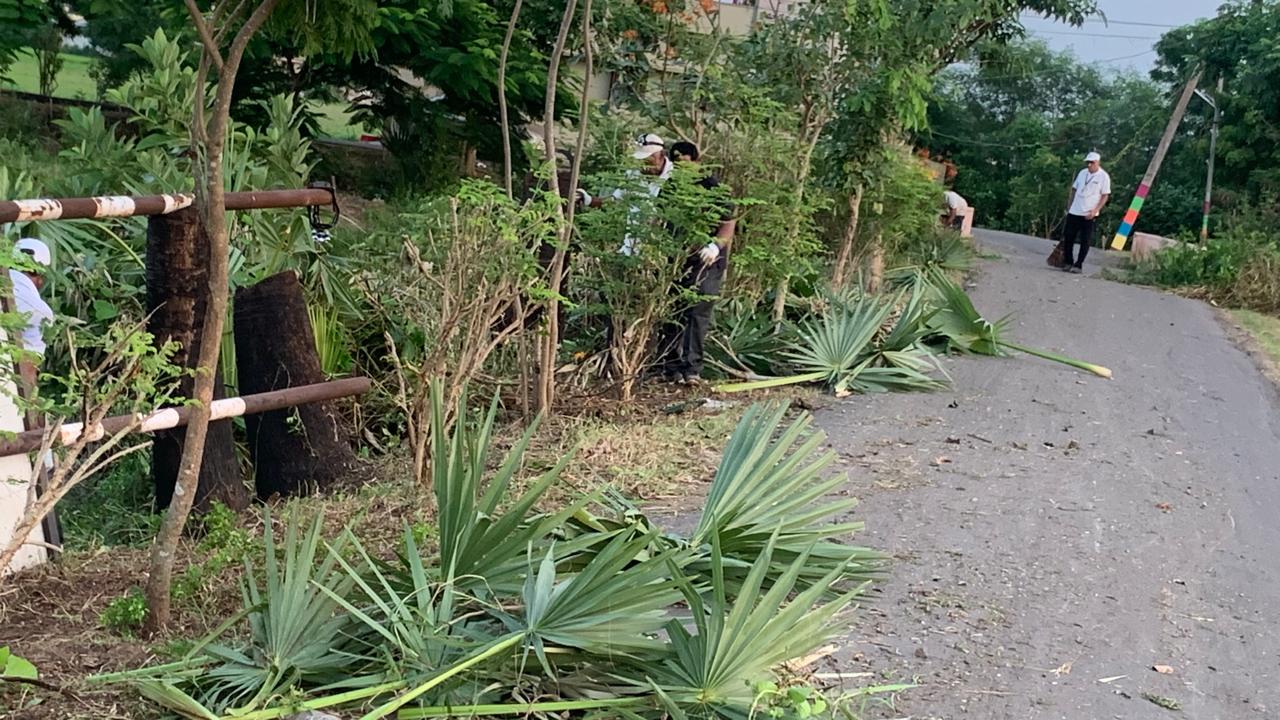 ఇక వీళ్ల కత్తుల కెర ఐన పిచ్చి మొక్కల, తీగల వ్యర్ధాల్ని ఊడ్చే, ప్లాస్టిక్ వ్యర్థాల్ని సేకరించే పనిని ముగ్గురు నిర్వర్తించారు!