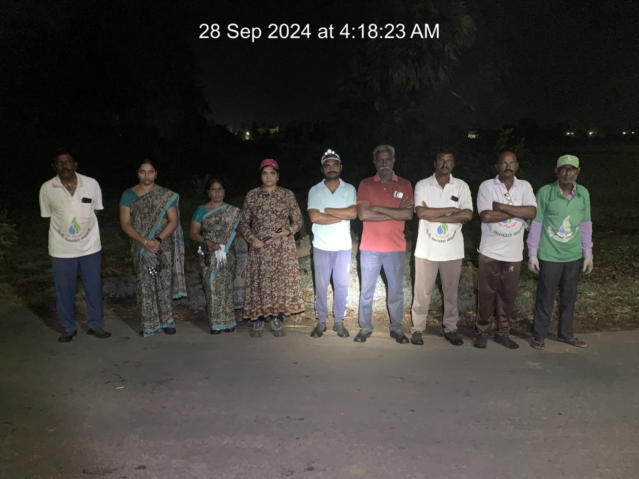 దాని సమయం వేకువ 4.18-6.15 నడిమిది ; అందుకు కర్తలు 3 గ్రామాల – ఏడెనిమిది వార్డుల- వివిధ నేపధ్యాల - వయస్సుల 9 + 24 మంది . (తొలి సంఖ్య మహిళామణులది!) 18 వ వార్డుకు చెందిన గంగులవారిపాలెం వీధి లోని భవఘ్ని నగరుకు చివరిది; పాతిక వేల గ్రామస్తులకు ప్రయోజనకరమైనది కూడ!