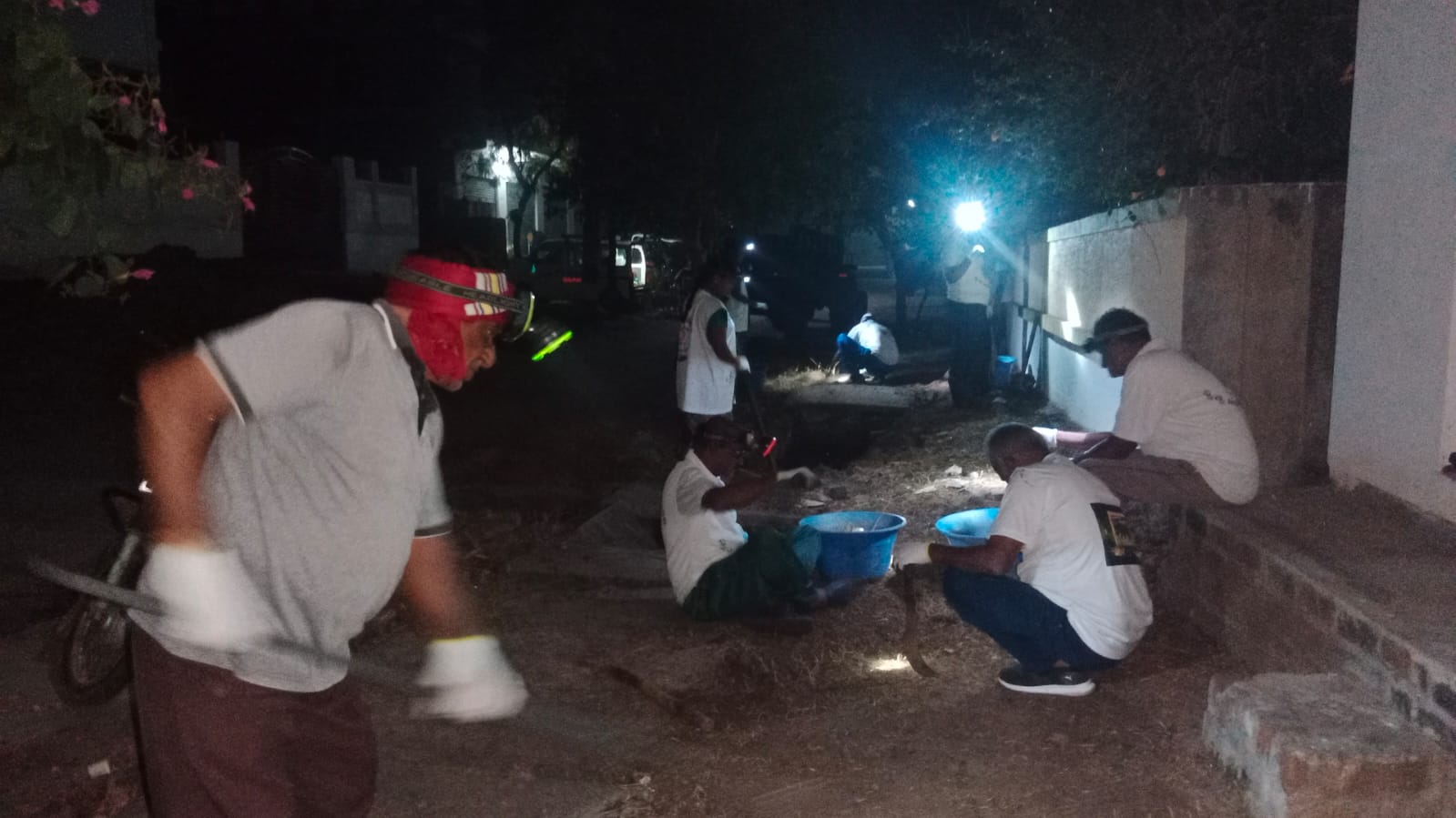 10-12-24 నాటి శ్రమోత్సాహం 4:19 కే మొదలై, 6:27 కు గాని తగ్గలేదు! అంటే 2 గంటల 8 నిముషాల వ్యవధన్నమాట! నేటి 33 గ్గురి శ్రమ సంఘటనా స్థలి బైపాస్ వీధిలో వడ్లమర మొదలు ప్రభుత్వ విద్యార్ధినుల వసతి గృహ పర్యంతం!