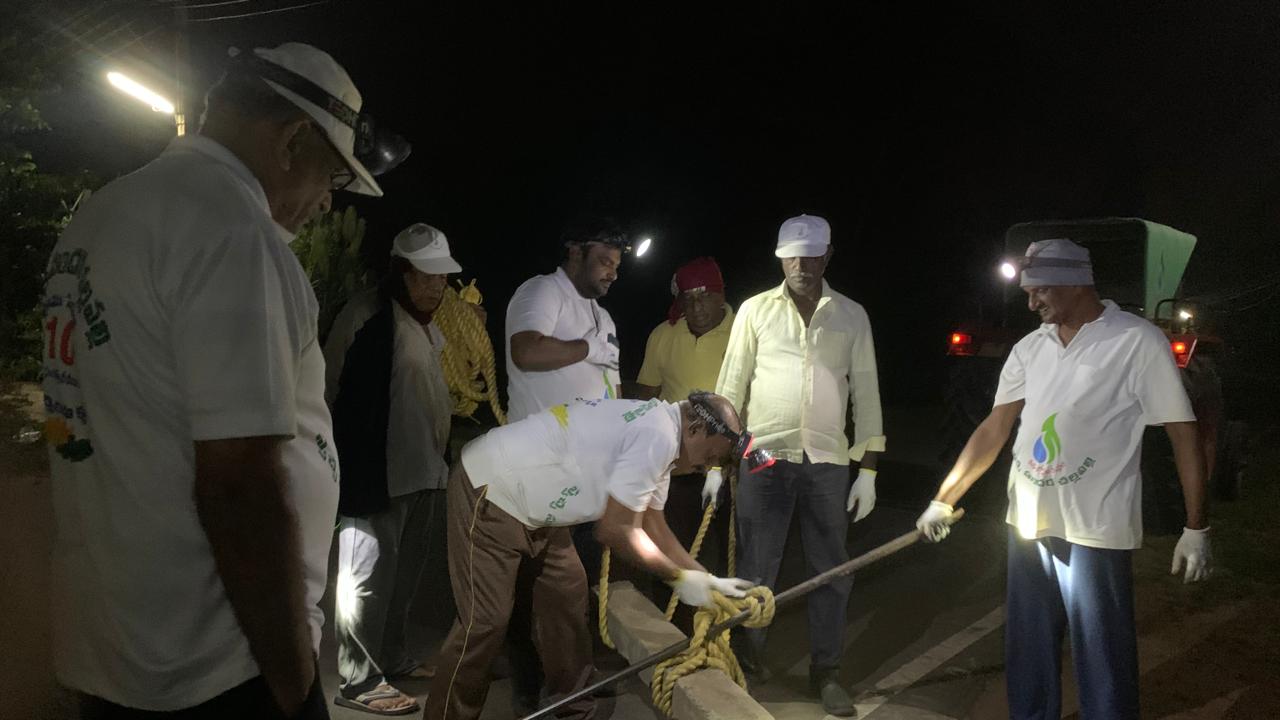 4) ఇక్కడికి 1 ½ కిలోమీటరు దూరాన - శ్మశానమని చెపితే తప్ప నమ్మని చోట - 10 మంది మెరికల్లాంటి కార్యకర్తలు 2 పొడవాటి విద్యుత్ స్తంభాలు పడి ఉంటే - తరలించి నాగాయలంక రోడ్డులో సర్దడం చూసి ‘ఇంత బరువు పనులా - వీళ్లు చేస్తున్నది’ - అనుకోగలడు!