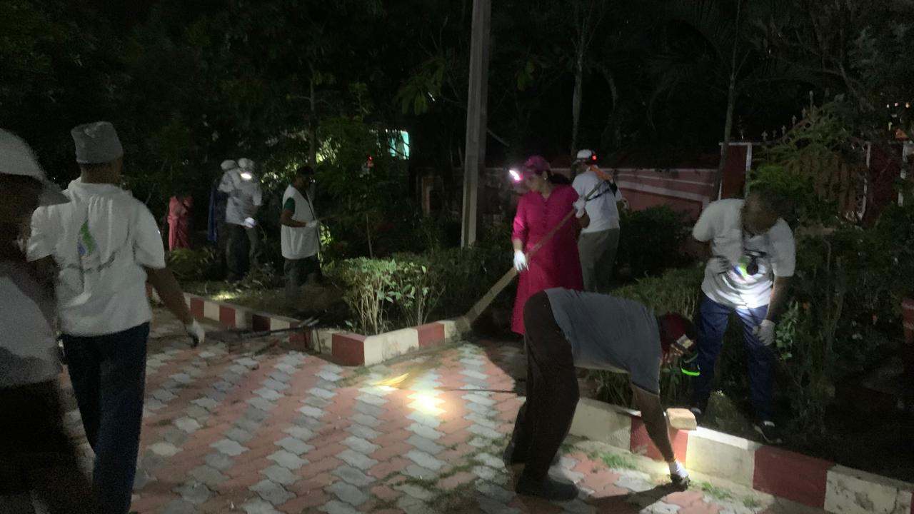 వాళ్లు ముందుగా సన్ ఫ్లవర్ వీధి వద్దా, అస్మద్గృహం వెలుపలా గంటకు పైగా శ్రమించారు, ఉద్యానంలోని కలుపును ఏరేశారు, చెట్లనూ, పూల మొక్కల్నీ సుందరీకరించారు, చెదపుట్టల్ని కుళ్లగించారు, వ్యర్ధాల్ని ట్రాక్టర్లోకి చేర్చారు, ఇద్దరం మాత్రం మా ఇంటి అవరణలో చొరబడి, 3 పెద్ద చెట్ల కొమ్మల్ని నరికి, ట్రాక్టర్లో నింపాం!