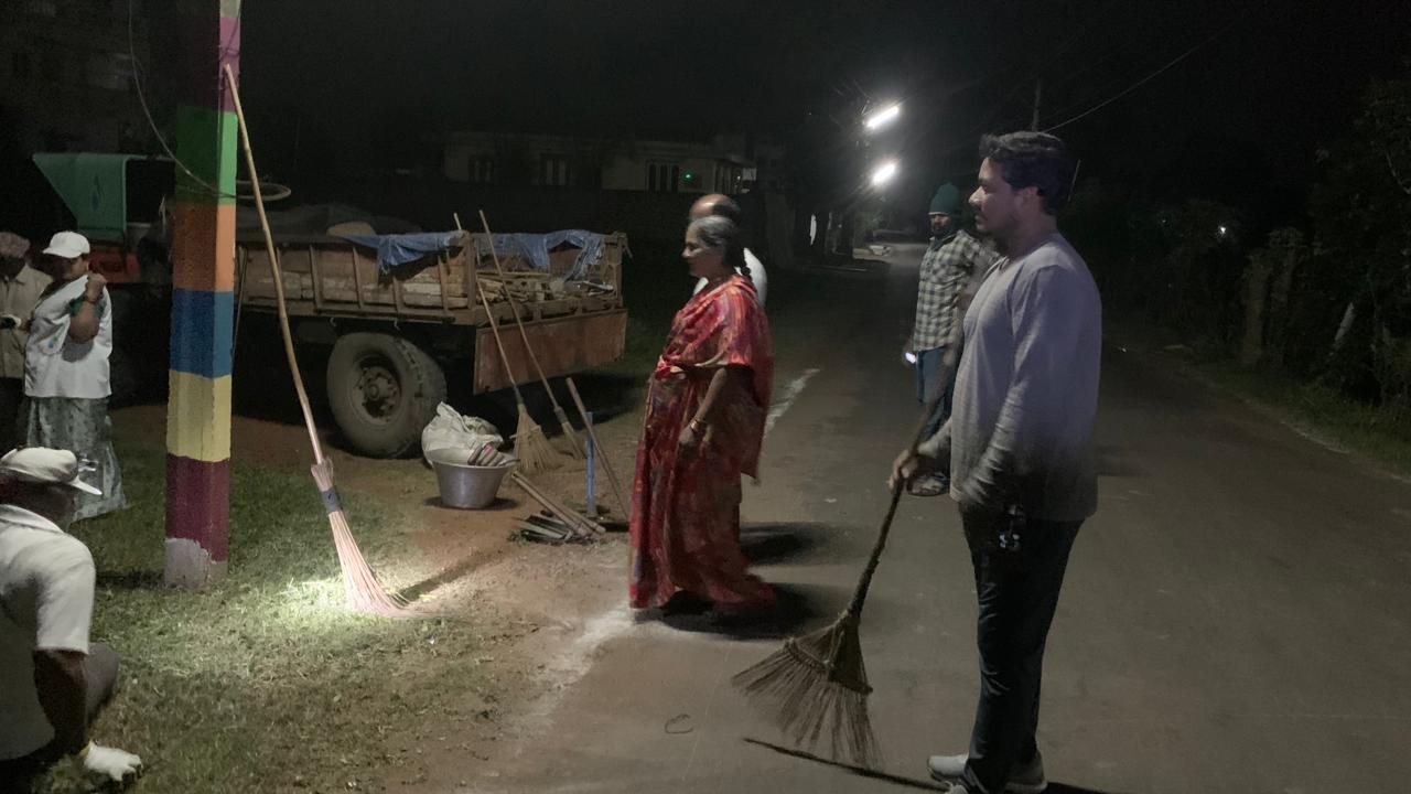 5:30 దాక శ్రమించి, అప్పటికి వచ్చిన అతిధి కార్యకర్తలతో – వాటర్ ఫౌంటెయిన్ వద్దకు చేరుకున్నారు పదకొండేళ్ల క్రితం ఈ వీధి ఛండాలపు చరిత్ర ఎట్టిదో - ఎవరి శ్రమ ఫలితంగా ఇప్పుడిలా మారిందో గుర్తుచేసుకొన్నారు. కార్యకర్తల శ్రమజీవన సౌందర్యాన్నీ, ప్రజల సామాజిక బాధ్యతనీ నందేటి శ్రీను పాటలుగా విన్పించాడు. స్వచ్ఛ కార్యకర్త పైడిపాముల సర్పంచి నినాదాల ద్వారా శ్రమదాన లక్ష్యాలను చాటి చెప్పితే –