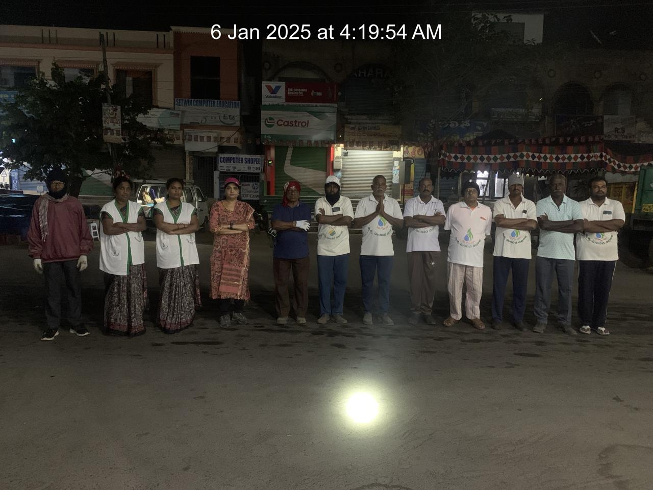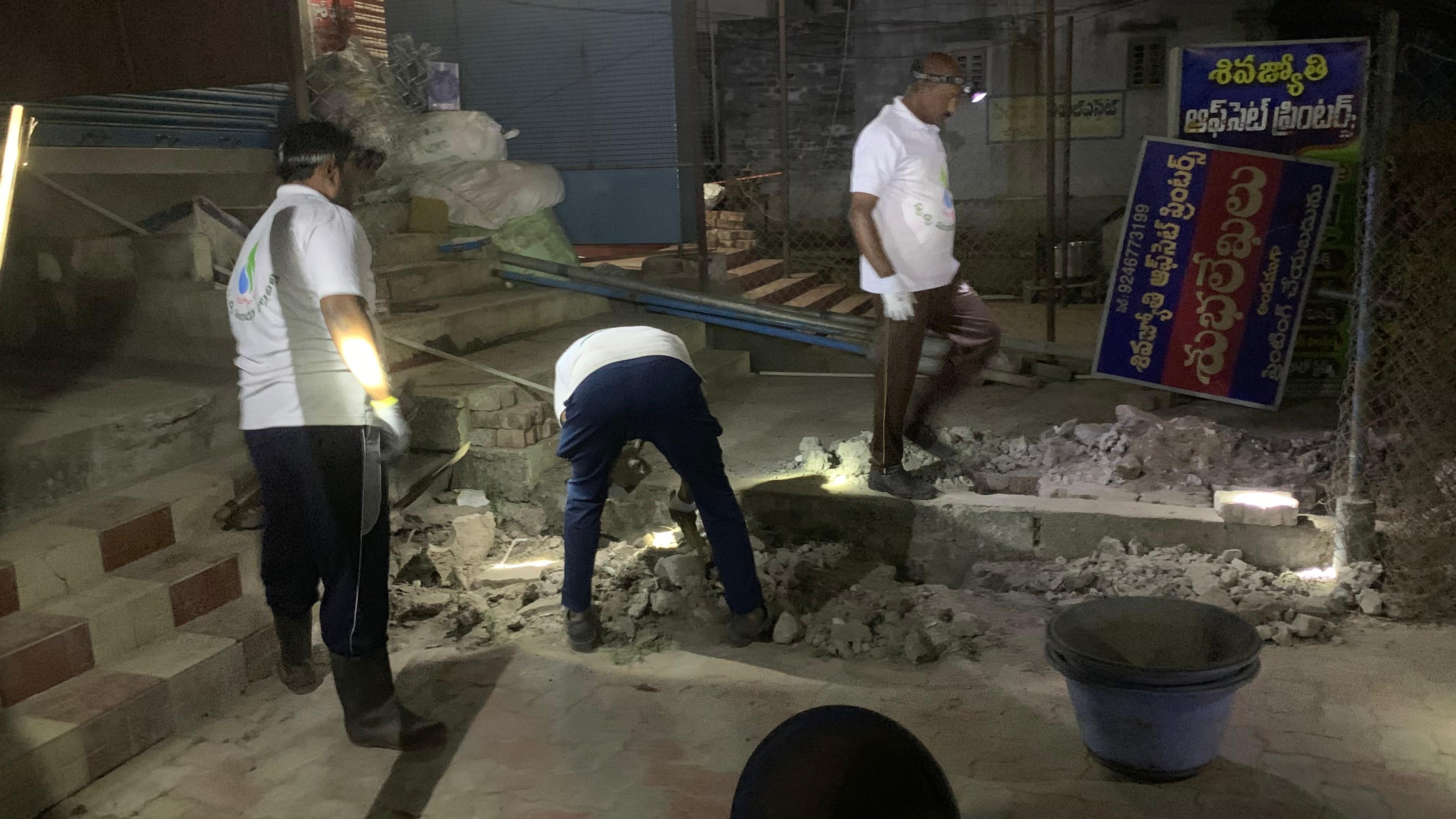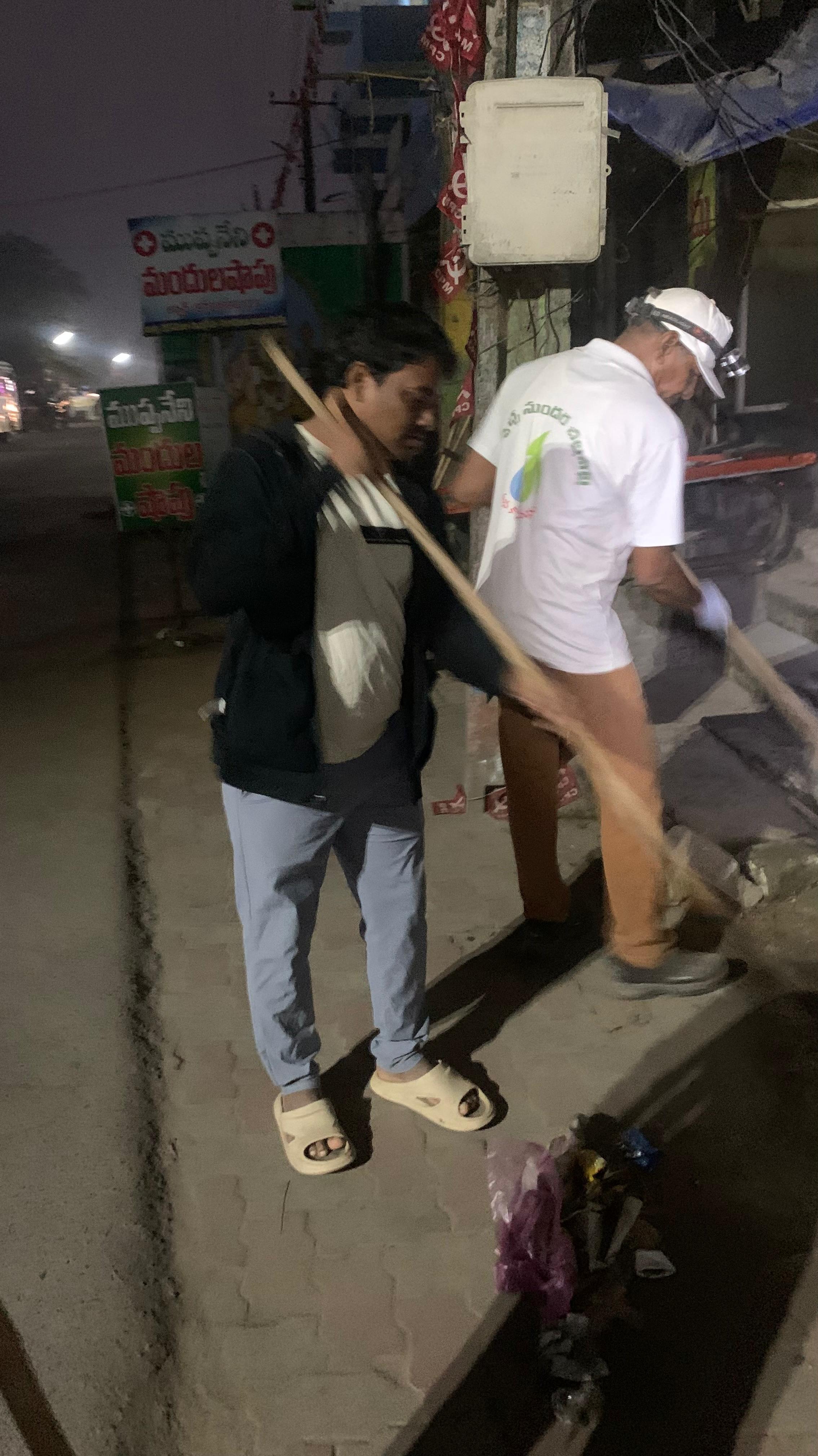 సోమవారం వేకువ 4.20 కన్నా ముందే సదరు కర్తవ్యాలు 11 మందితో మొదలయ్యాయి! తొలుత ATM ల వద్దా, ఆ ఉపరి కెనరా బ్యాంకు పడమర సందులోనూ, ప్రారంభమైన శ్రమదానం మరో 27 గురు వచ్చి కలిశాక బందరు రోడ్డులోనే సెంటరు వైపుకు మళ్ళింది!