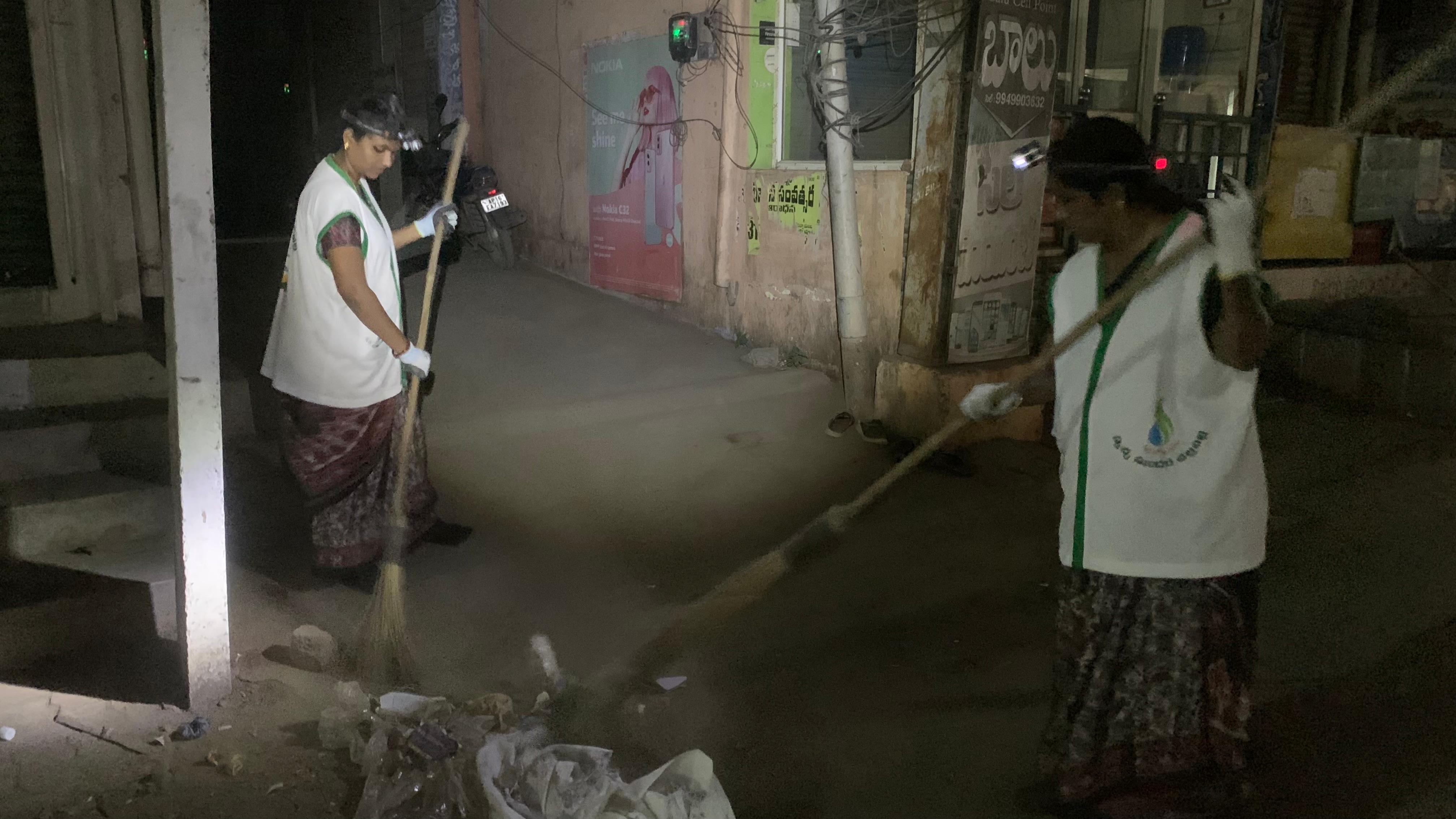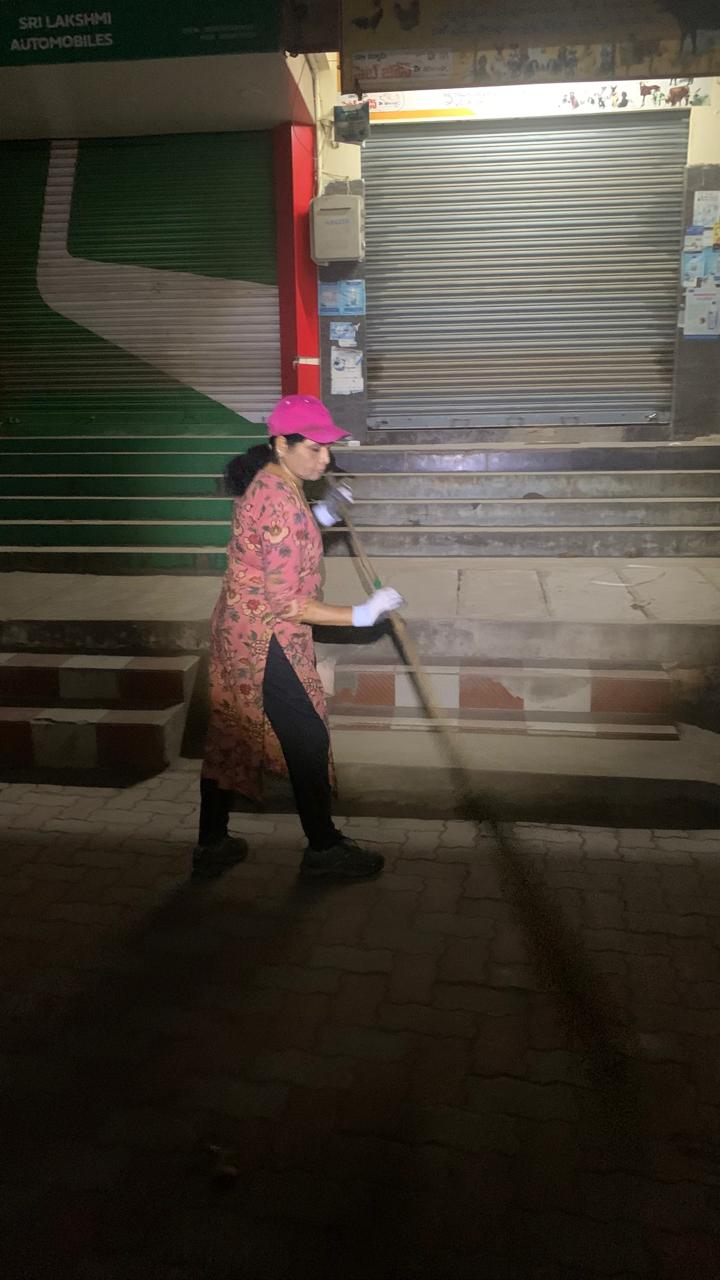 కెనరా బ్యాంకు వెనుక సందులో 2 డ్రైన్లను ఇద్దరు ముగ్గురం చెత్త లాగి, గడ్డి పెరికి, ఇంతవరకు చాల్లే అనుకొన్నాం గాని- 3 గ్గురు మహిళా కార్యకర్తలకది చాలలేదు – ఆఅ చిన్న వీధి వీధంతా గడ్డి పరక మిగలకుండా, 6.30 దాక మెరుగులు దిద్దనిదే ఆగలేదు!