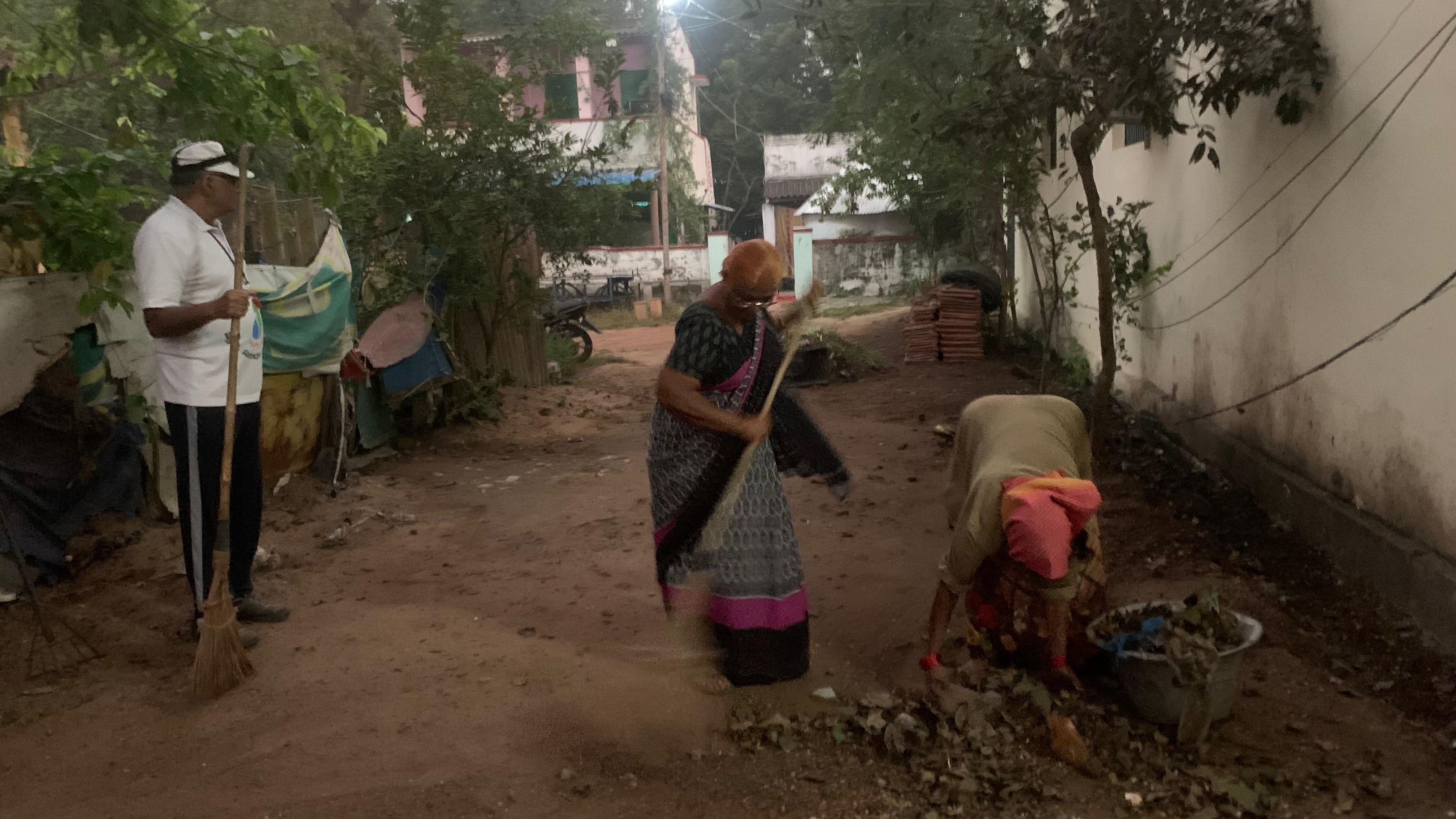 6.00 కాక ముందే పంచాయతి కార్మిక, ఉద్యోగు లేడుగురు రానే వచ్చారు. డ్యూటీ లో భాగంగా ముందుగా ట్రాక్టరు నిండా తుక్కులూ, ప్లాస్టిక్ చెత్తలూ నింపనే నింపారు. ఇది కాక-