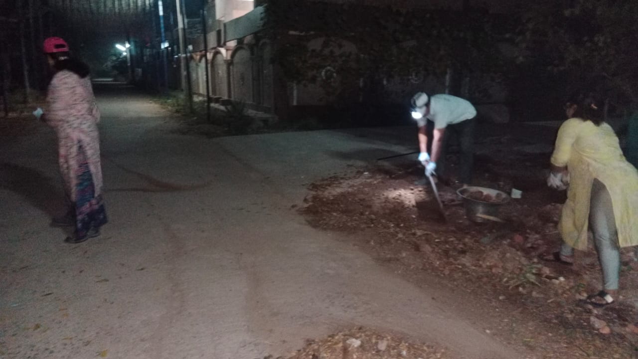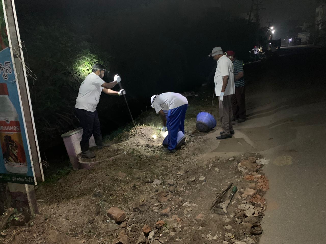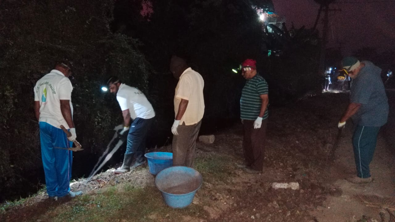 విద్యుత్ ప్రసారం ఐదుంబావుకే నిలిచిపోగా, చాలీచాలని తల దీపాల వెలుగులోనే 2 వీధుల పనులూ 6.05 కు ముగిశాయి. 100 నిముషాల వేకువ ఘడియల్లో పూర్తయిన వీధి బాధ్యతలేవనగా: