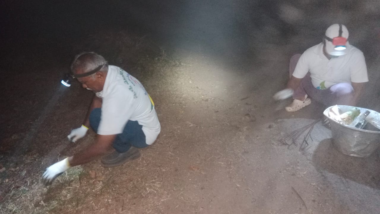 2) పడమటి డ్రైనులో కాంపౌండరు, రైతు, నర్సులు 10 మంది 50 గజాల మేర తుక్కులు లాగి, ఎండు కొమ్మలు నరికి, 2 గోతాల సగం ఎండిన కొబ్బరి బొండాల వ్యర్ధాల్ని తొలగించే పనులూ,