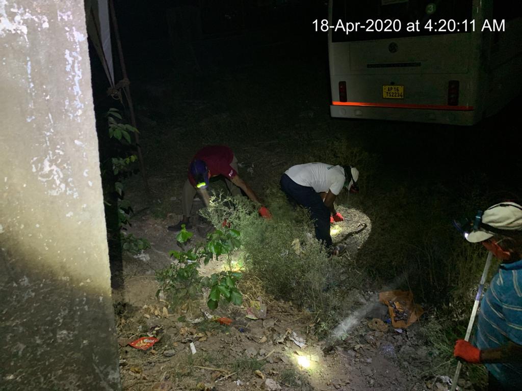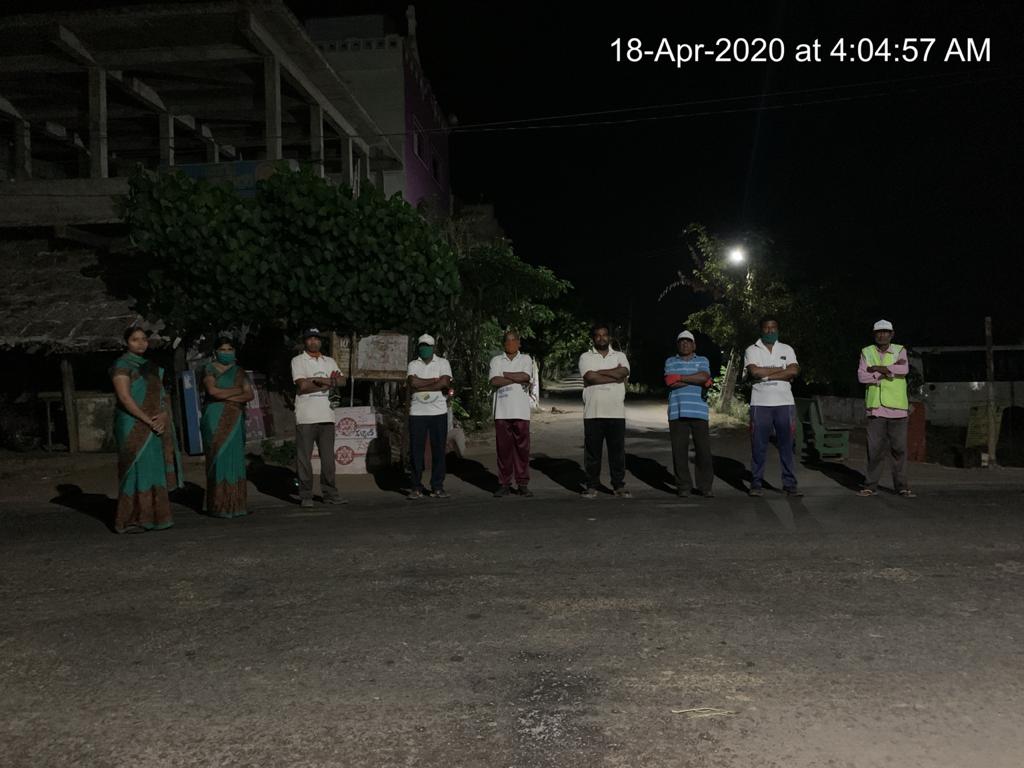ఇక గ్రామ రక్షణాత్మక (రెస్క్యూ టీమ్) దళం వారున్నారు. ఊళ్ళో రోడ్ల గుంటలు పడితే, కాలవ గట్లు కోసుకుపోతే, రోడ్ల – వంతెనల మలుపులు చెడిపోతే, చెట్ల పొందికలు లోపిస్తే .... అన్నీ వీళ్ళ వంతే! ఈ వేకువ కూడ కోసిన గడ్డిని, దుమ్మును ట్రాక్టర్ లో నింపుకొని, గంగులవారిపాలెం వంతెన సమీపంలో బండ్రేవు కోడు మురుగు కాలువ గట్టు కోత పడకుండా సర్ది వచ్చారు. అప్పటి నుండి నారాయణరావు నగర్ వీధి వ్యర్ధాలను ట్రాక్టర్ లో నింపుకొని చెత్త కేంద్రానికి చేర్చారు.