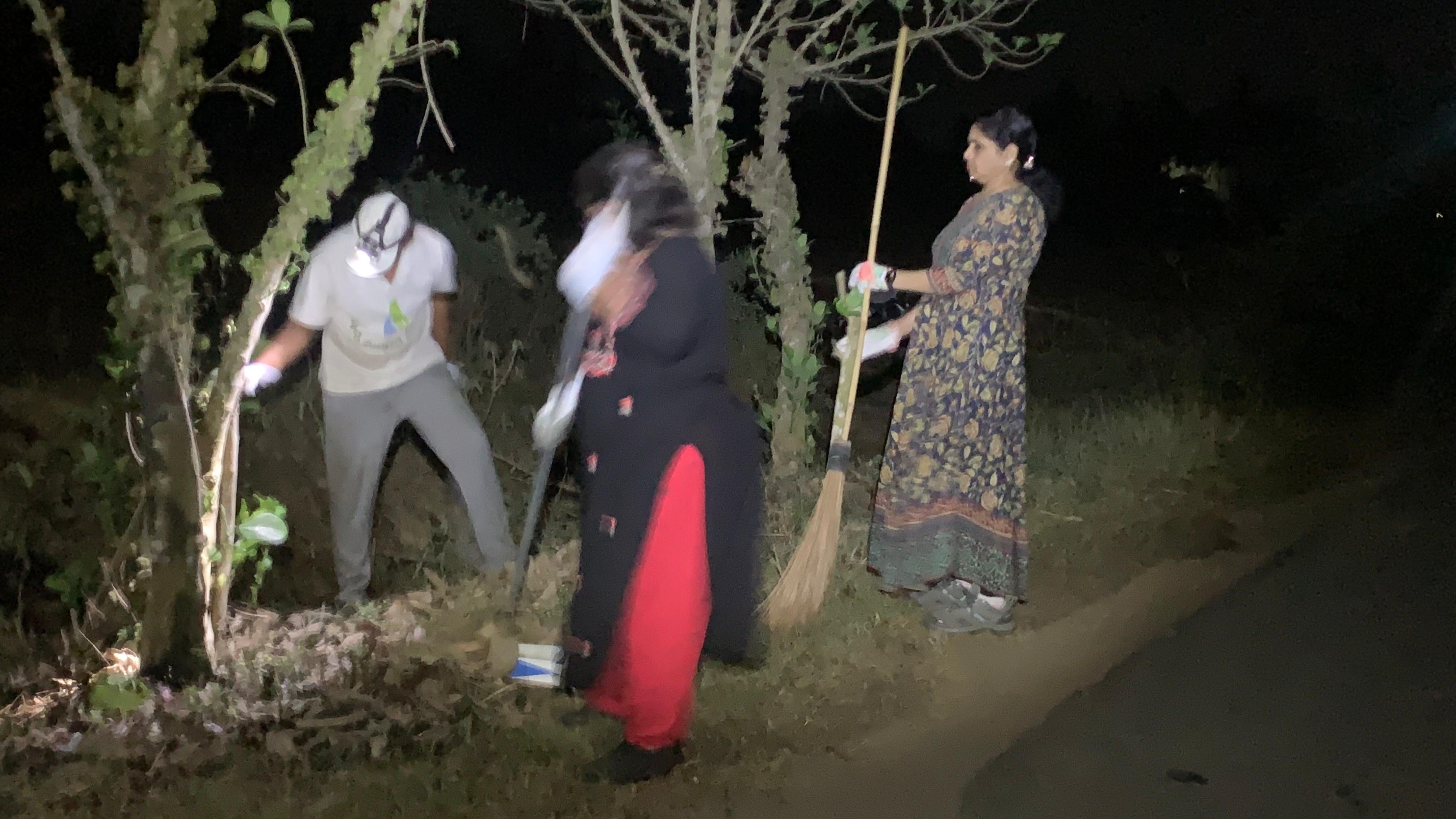 ఆకాస్త జాగాలోనే పిచ్చి కంపల, ముళ్ళ పొదల, ప్లాస్టిక్ దరిద్రాల, వృక్ష సుందరీకరణల, బాట ఊడ్పుల, గడ్డి తొలగింపుల పనిలో 30 కి పైగా కార్యకర్తల శ్రమ సందడి!