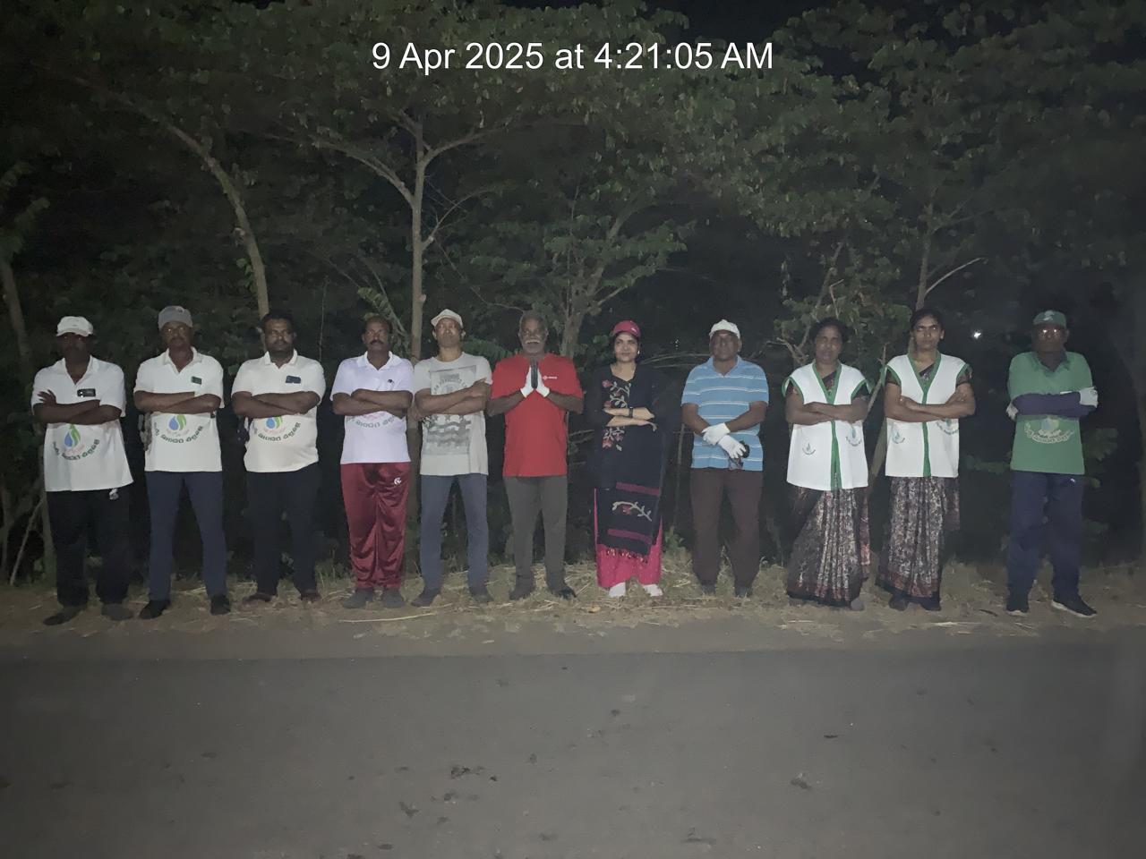 బుధవారం (9.4.25) కూడ మళ్లీ ఆదే పాగోలు మార్గం; సమయదానాలు కూడ 4:20 – 6:10 మధ్యస్తాలే! ఊళ్లోవి కాక – పొరుగూరి వీధి శుభ్రతలు కూడ తమకే కావాలనుకొనే 38 మంది శ్రమ వైభవాలు! ముసలోళ్ళా – ప్రొద్దున్నే బడుల డ్యూటీలున్న పంతుళ్ళా - గృహిణులా - ఆటో రిక్షా తోలుకోవలసిన నాగరాజా... ఎవరు వెనక్కి తగ్గారు కనుక!