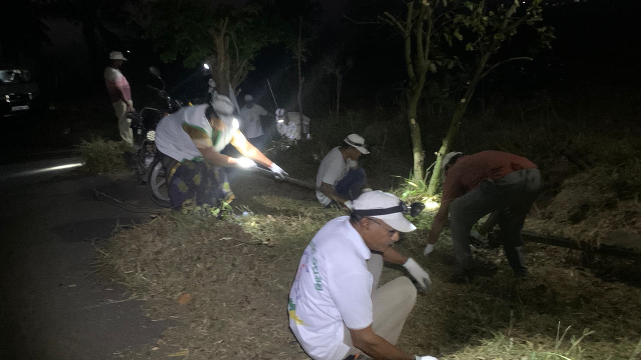 - ఈ కిలోమీటరుకు మించిన పాగోలు రోడ్డులో కార్యకర్తలు 3 బృందాలుగా విడిపోయి,