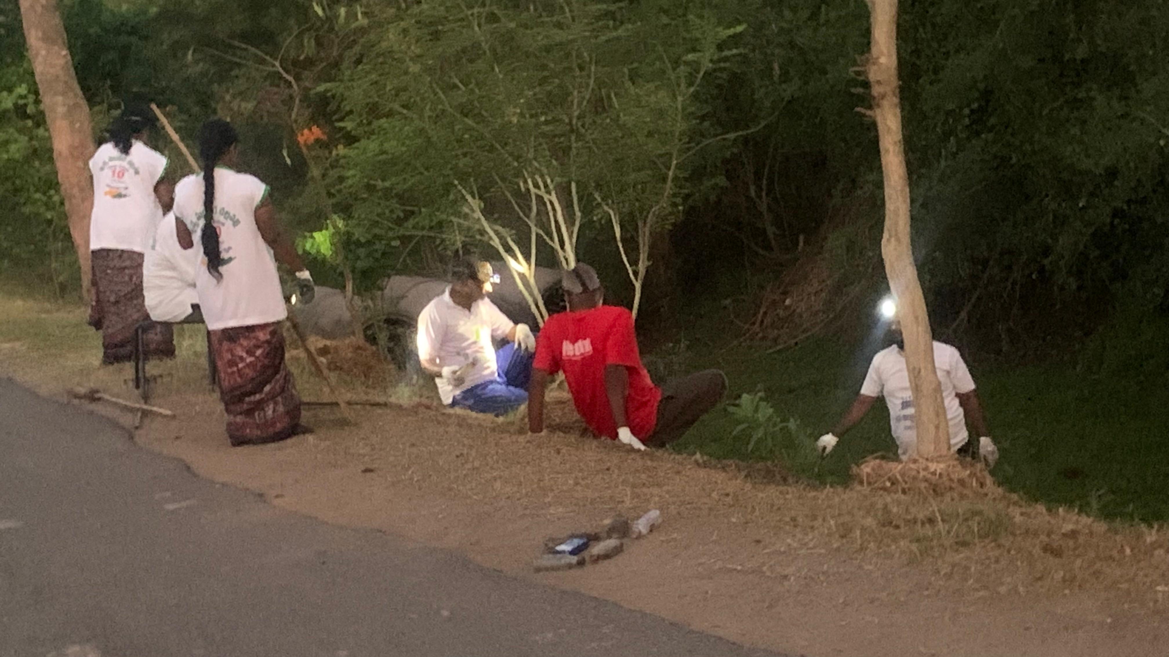 2) అక్కడ ఆ 6 గురికి గతంలో చేసిన శుభ్రత చాల్లేదేమో మరి - మళ్లీ ఈ పూట గంటకు పైగా రోడ్డు మలుపు వద్ద శ్రమదానం,
