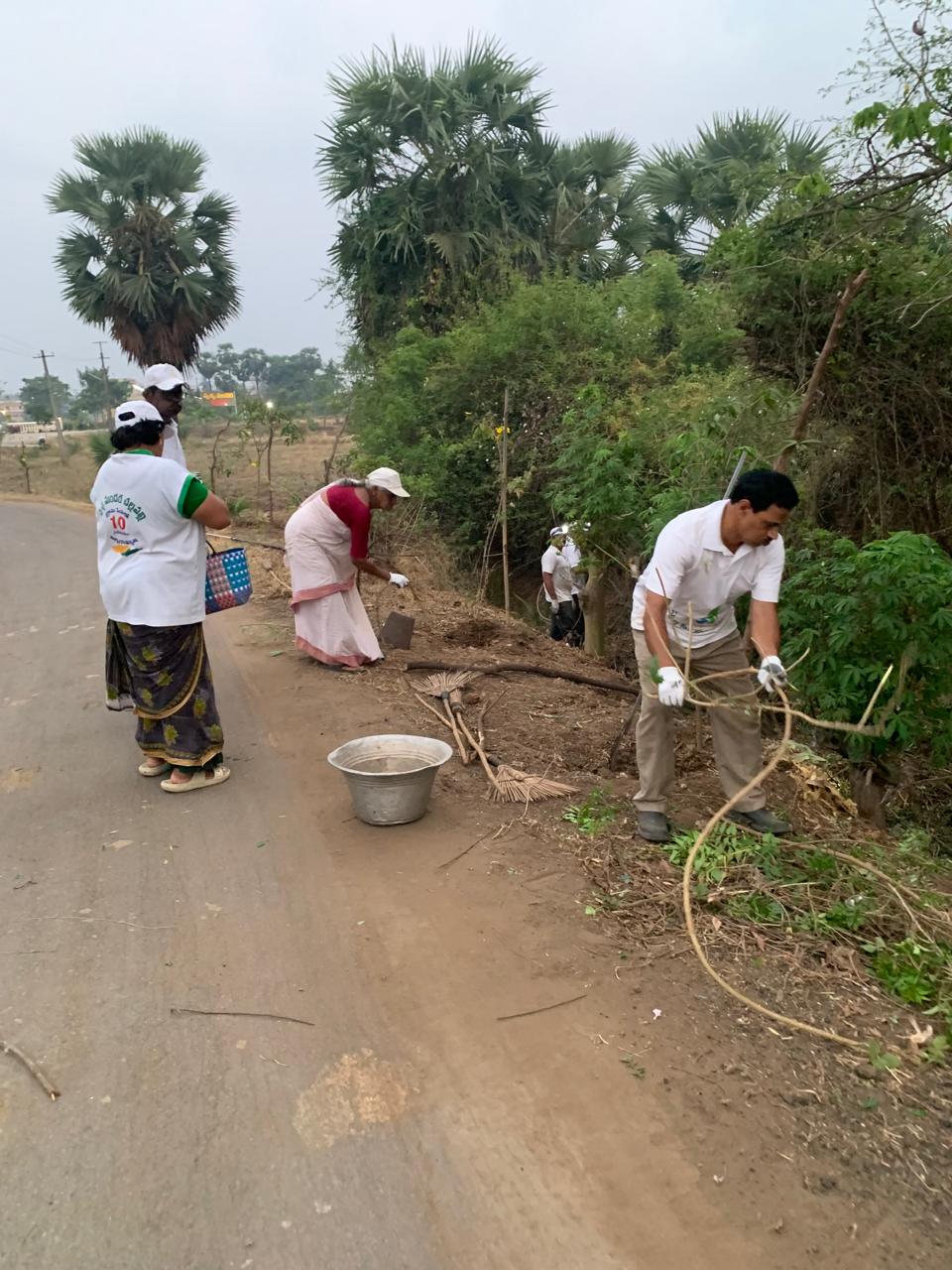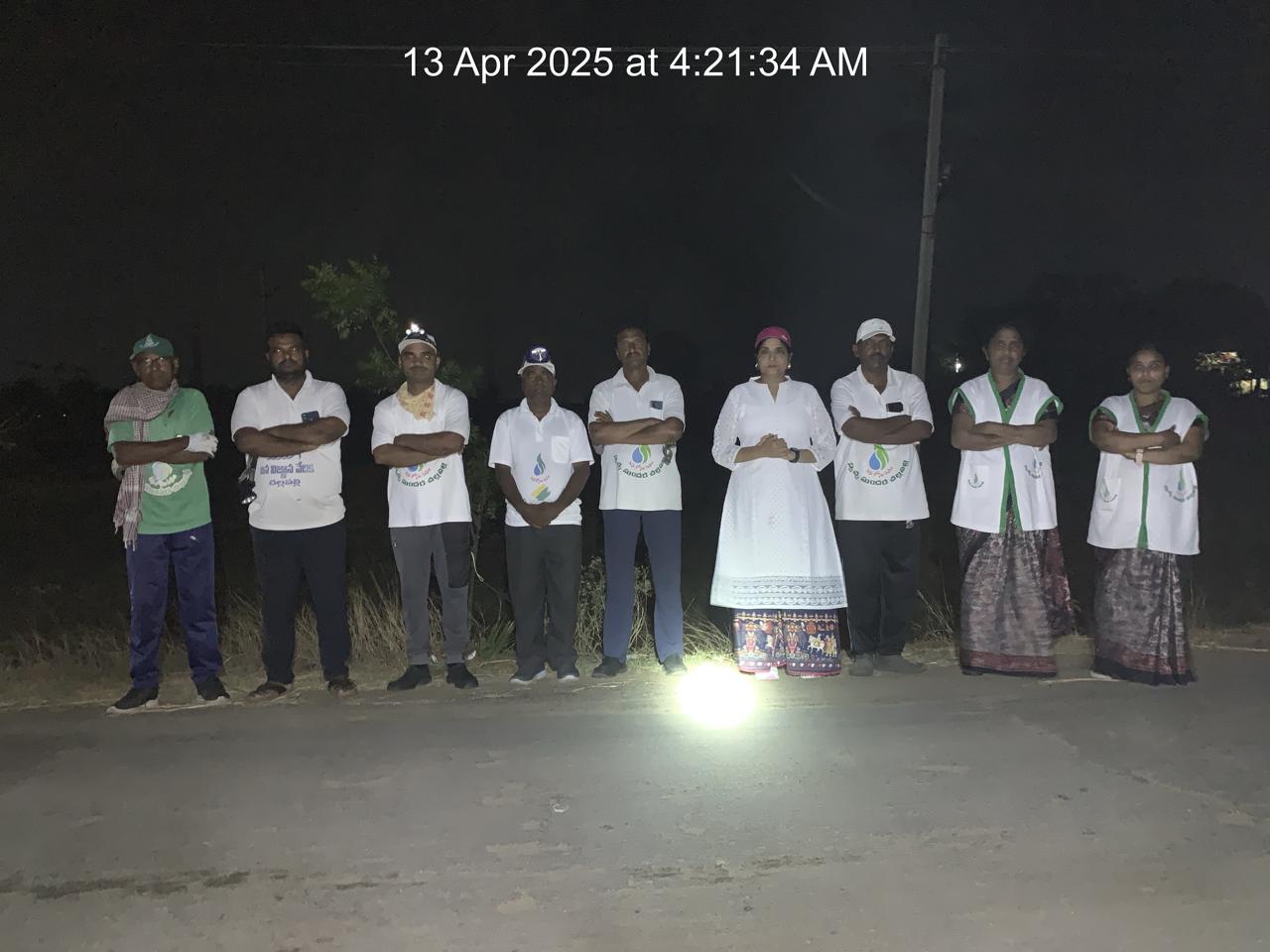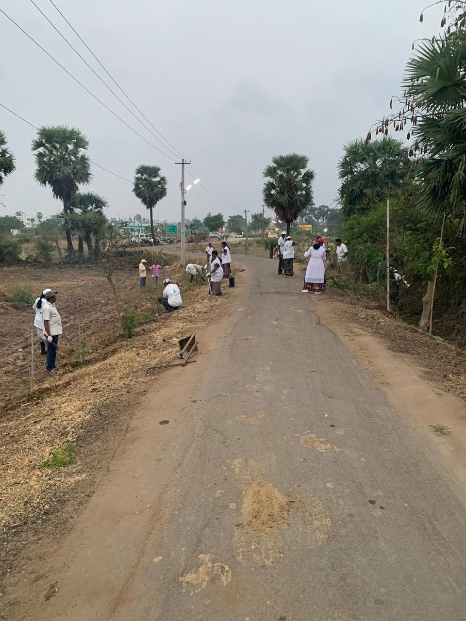 ఆదివారం (13-14-25) వేకువ సైతం మళ్లీ అదే చోట- అదే వేళ - 4.20 కల్లా ఆ 10 మంది కార్యకర్తలే - ఆగింది ఊరి వెలుపలే గాని, ఊరి లోపలా, పడమర దిశగా స్వచ్చ కార్యకలాపాలు. వీధి పారిశుద్ధ్య పని మంతులు 42 గా లెక్క కొచ్చినా- జాతీయ రహదారి- 216 దగ్గర తుది సభలో మాత్రం 39 మంది మిగిలారు.