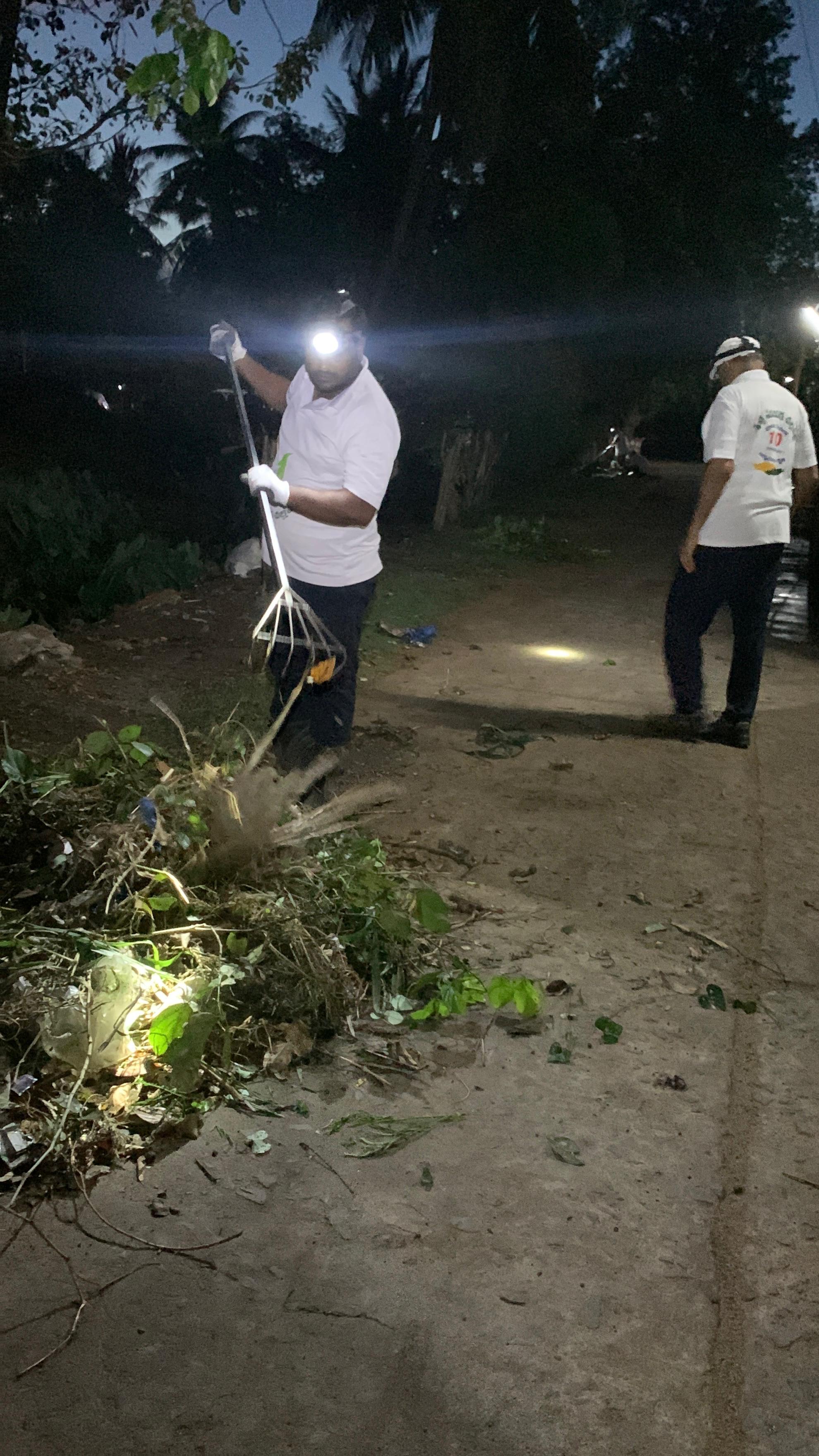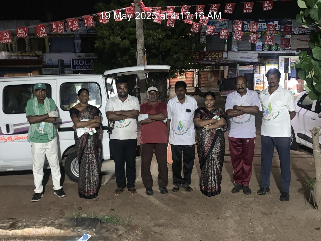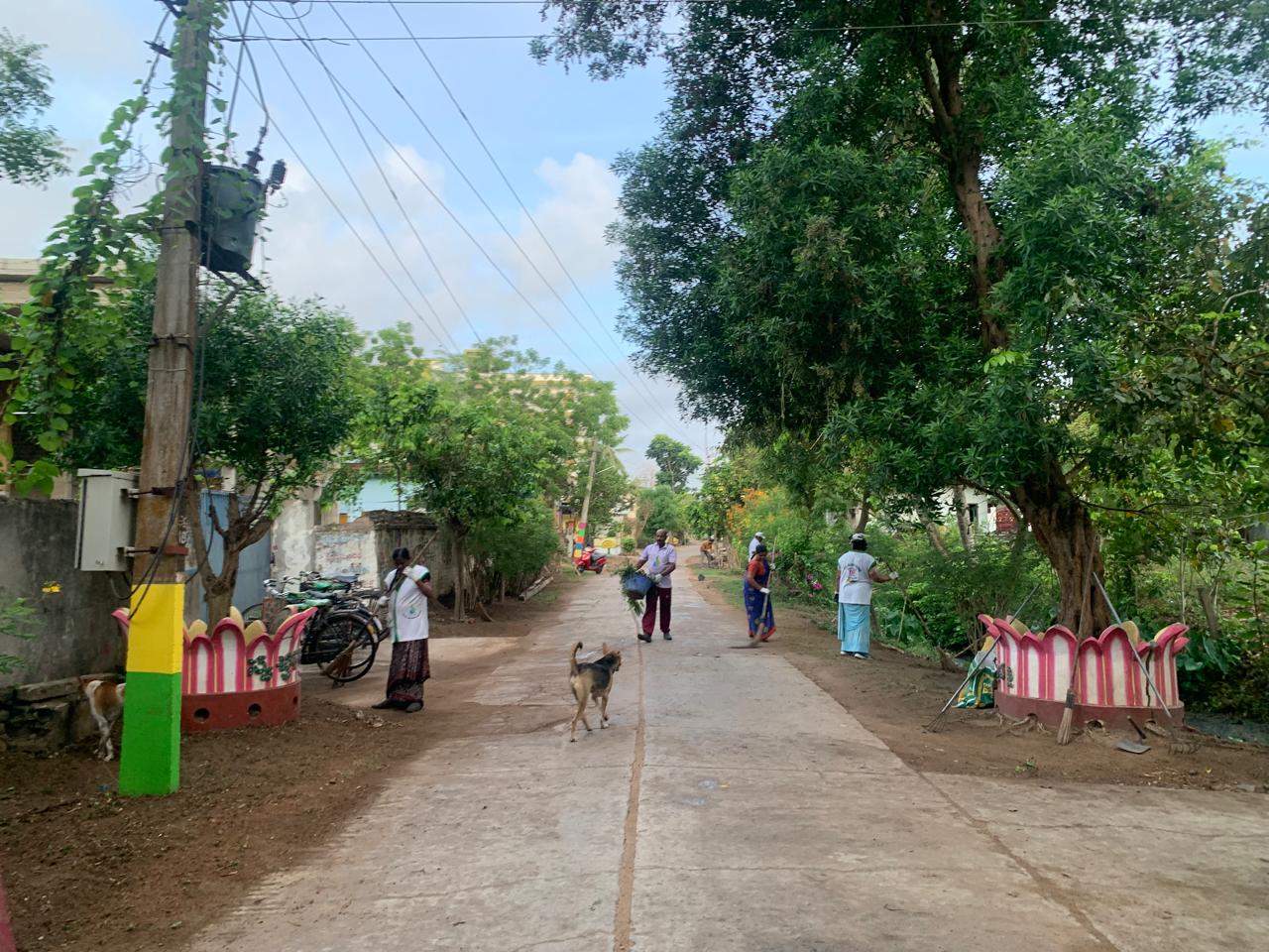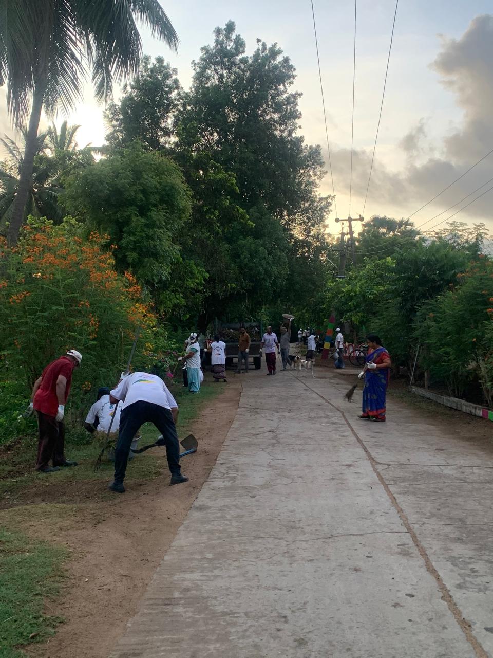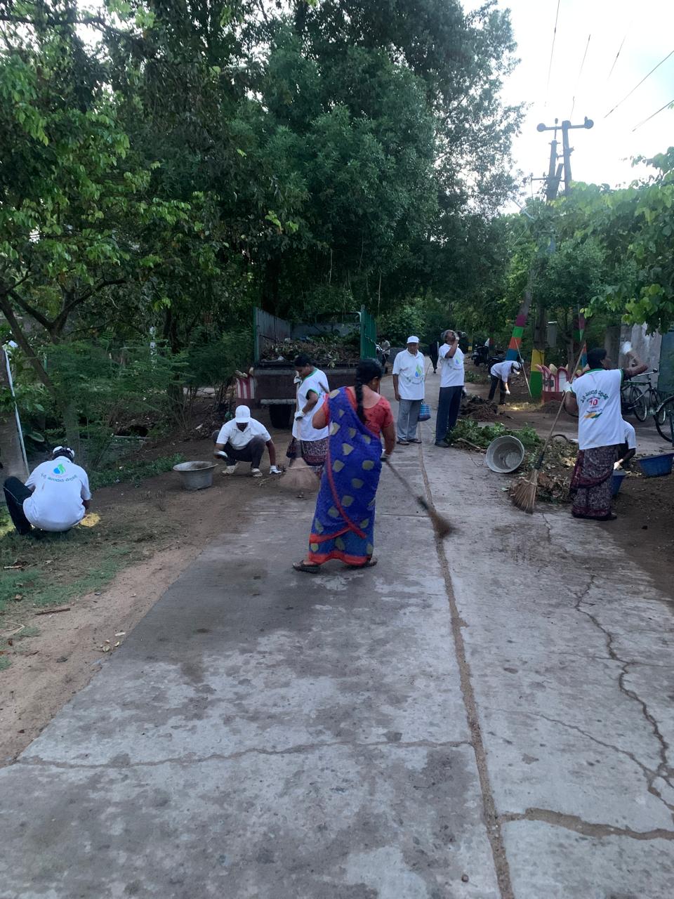మూడు రోడ్ల కూడలిని శ్రద్ధగా చీపుళ్ళతో శుభ్రం చేస్తూ కొందరు, చెత్తను లోడింగ్ చేయడంలో సహకరిస్తూ మరికొందరు బిజీగా కన్పించారు.