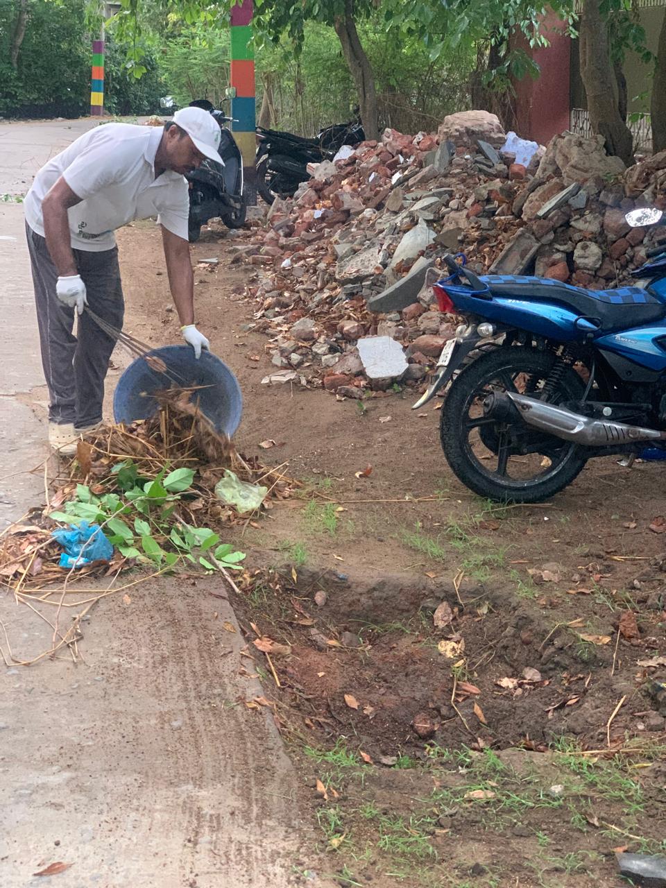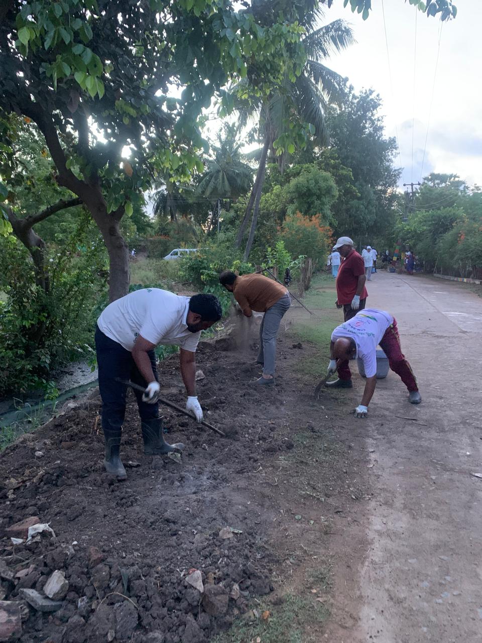 రైస్ మిల్ గోడ ప్రక్కగా మొక్కల మొదళ్ళలో శుభ్రం చేస్తూ, చెత్తను ప్రోగుపెడుతూ, సందడి చేస్తూ ఇద్దరు కార్యకర్తలు శ్రమించటం కన్పించింది.