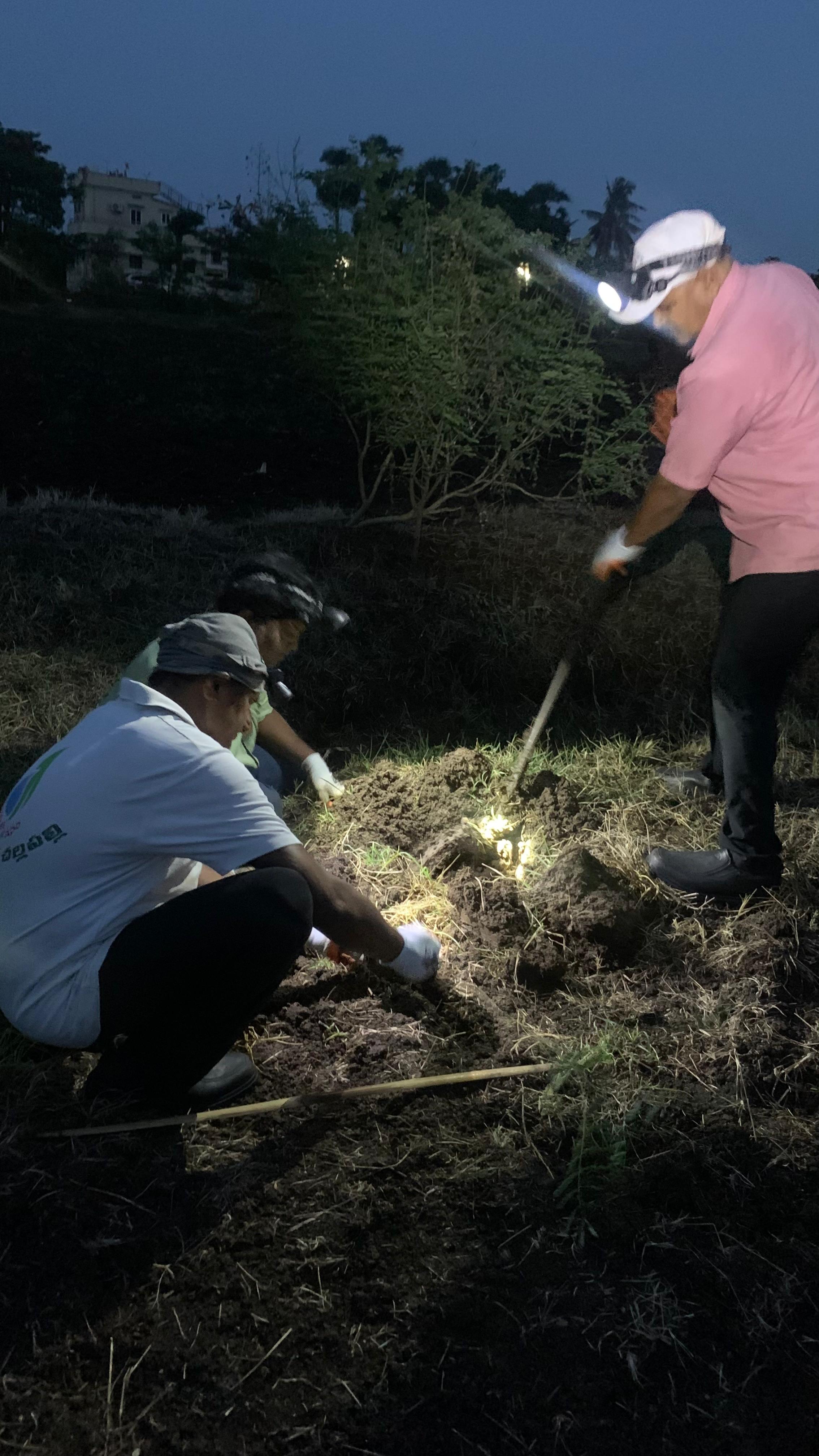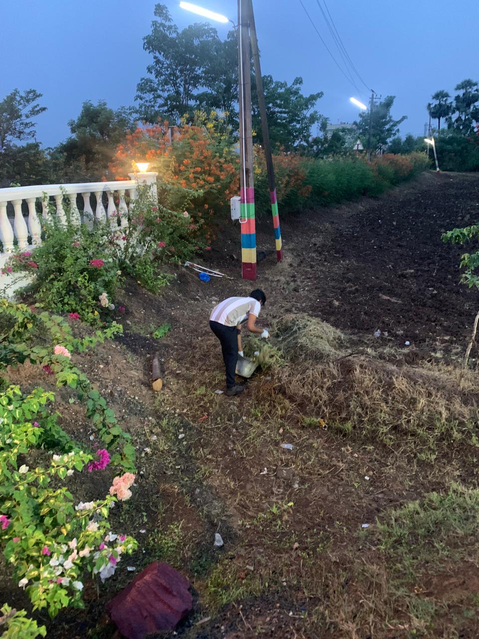 మరికొద్దిమంది కార్యకర్తలు మాత్రం స్వాగతద్వారానికి అవతల వైపు కొంత దూరం నుండి అక్కడక్కడ 17 మొక్కలను నాటి పాదు చేయడం జరిగింది. రోడ్డుకు అవతలి వైపు 2 సంవత్సరాల క్రితం నాటిన సువర్ణ గన్నేరు మొక్కలు గుత్తులుగుత్తులుగా పూలతో నిండి పసుపు పూల కాంతులీనుతున్నాయి.