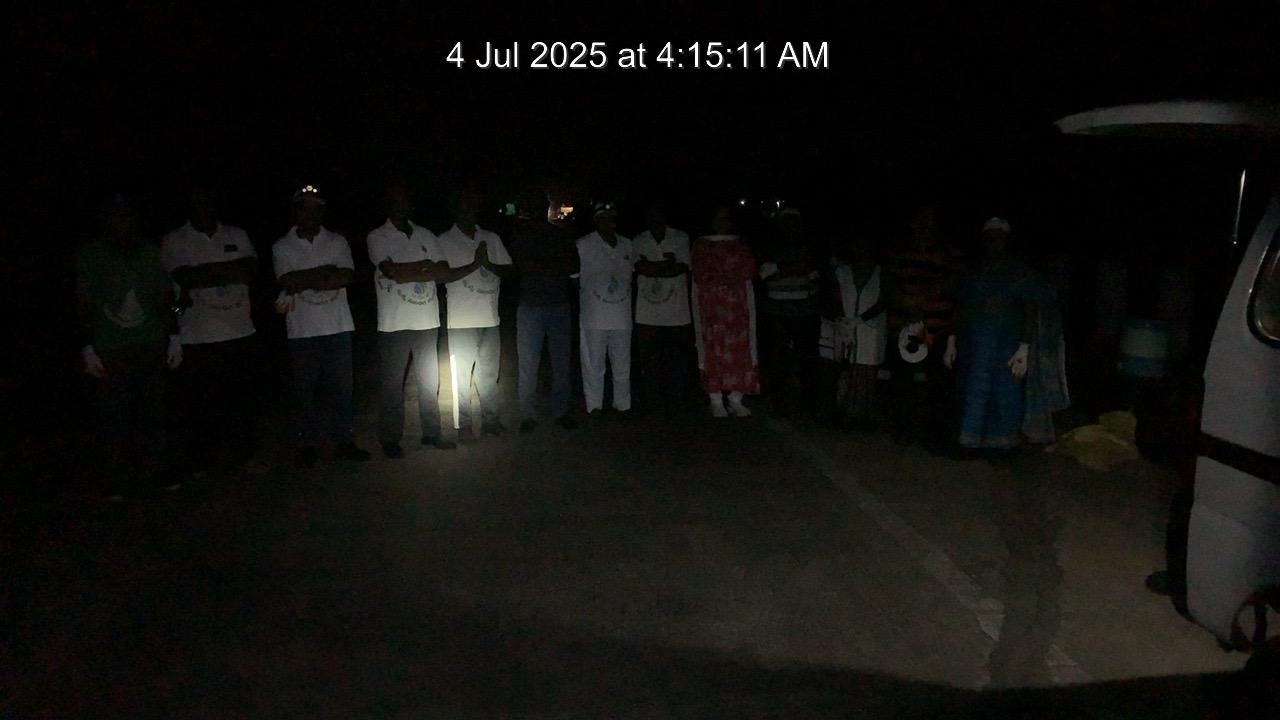 6 గంటల వరకు 32 మంది కార్యకర్తలు శ్రమించి విజిల్ మ్రోగడంతో పనికి విరామమిచ్చి కాఫీ సేవించారు.