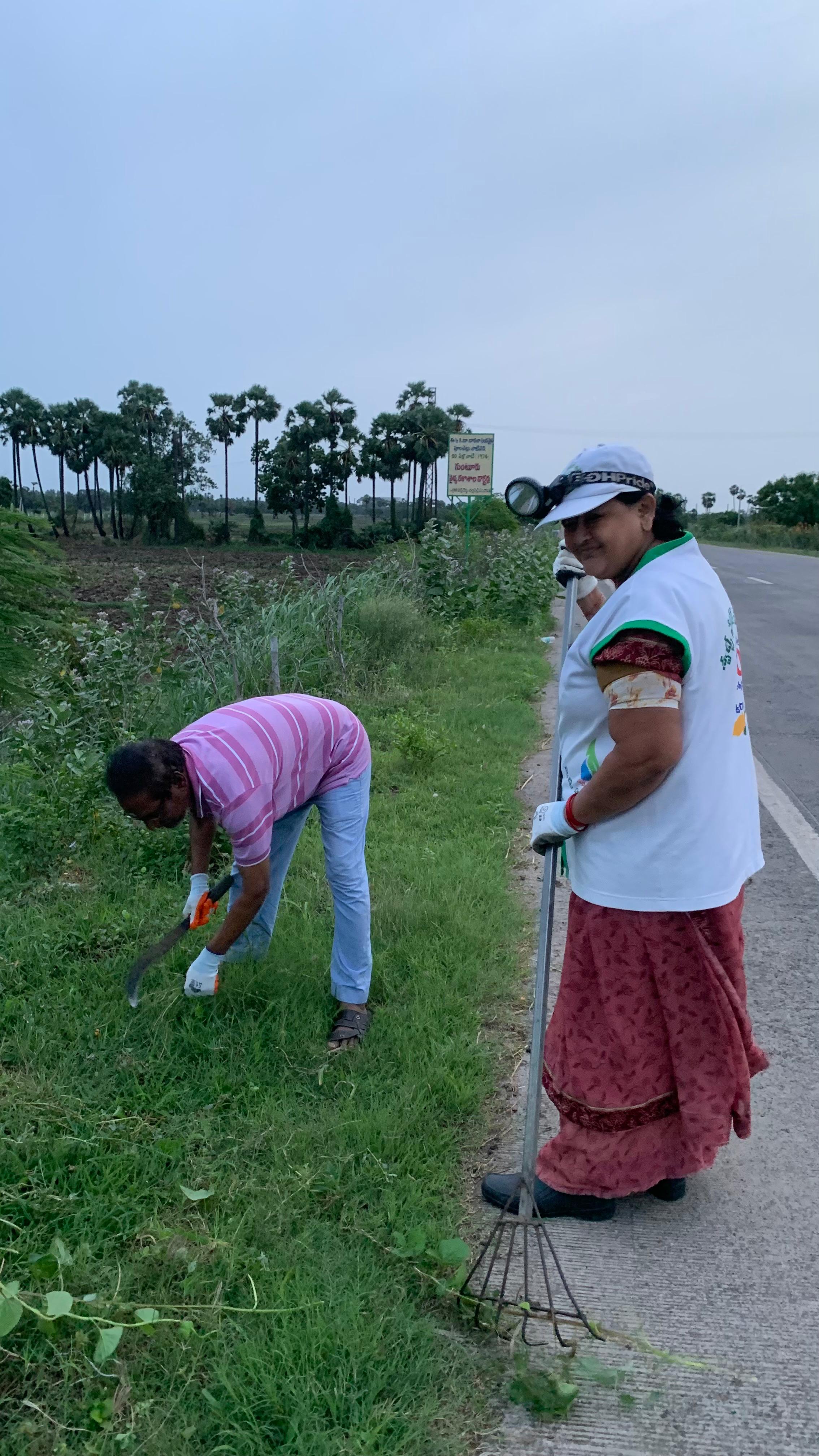 ఆ ప్రాంతములో ఇంతకుముందు కార్యకర్తలు పని చేసి ఎక్కువ రోజులు అగుట చేత పిచ్చి మొక్కలు కలుపు మొక్కలు విపరీతంగా పెరిగి కార్యకర్తలు ఎక్కువగా శ్రమించి ఆపనిని కొంతభాగం చేయగలుగుతున్నారు. మహిళా కార్యకర్తలు మాత్రం మార్జిన్ లో గడ్డిని సమానంగా కొడవళ్ళతో కోస్తూ చూపరులకు ఎంతో అందంగా కనపడే లాగున ఆ మార్జిన్ తయారయింది.