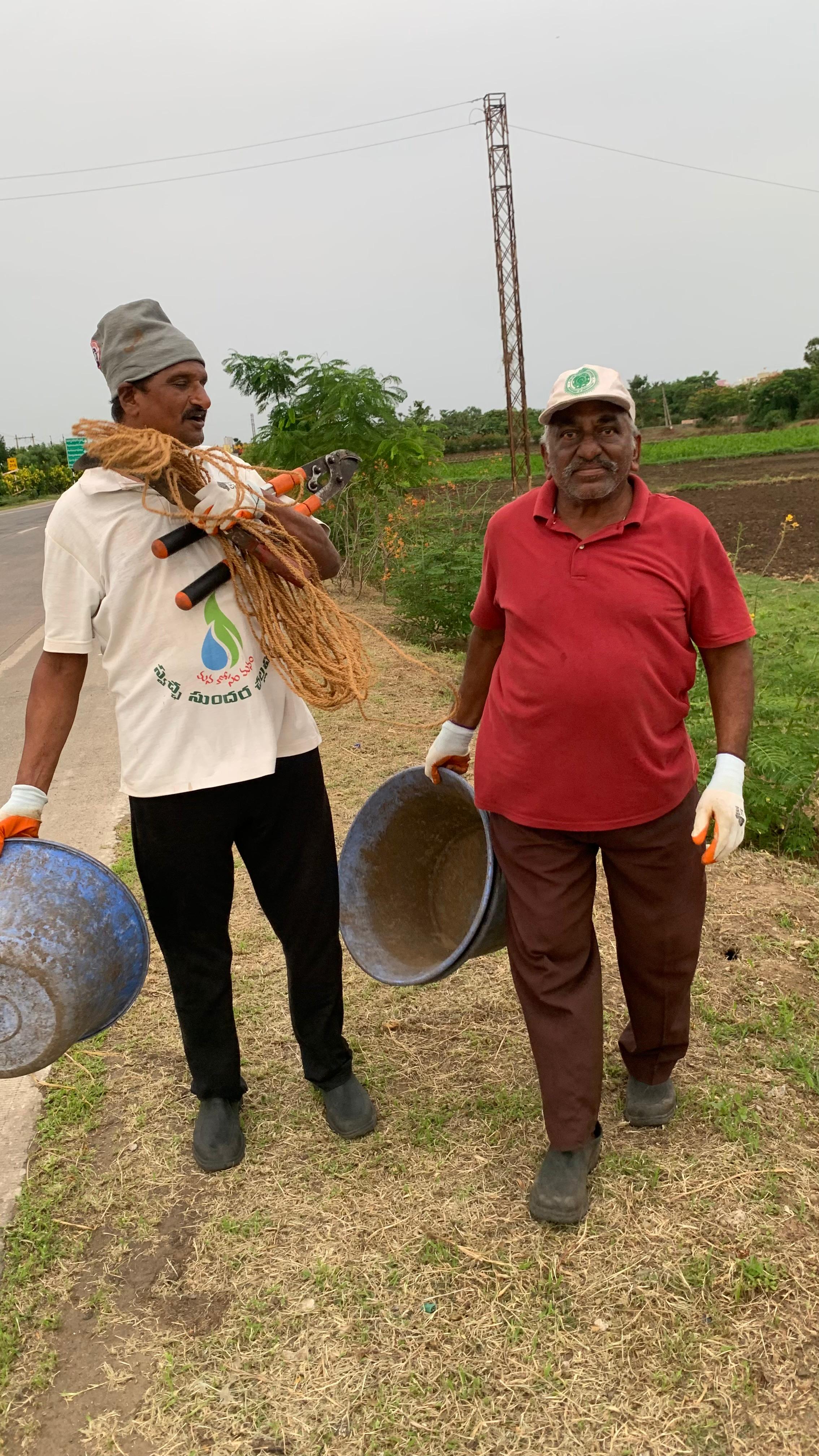మరొక బృందం వారి పని షరామామూలే అన్నట్లు పెద్ద మొక్కలకు మొదళ్లు బలం అయ్యేటట్లు మట్టిని తవ్వి పోసి వంగిన మొక్కలను నిలబెట్టి కట్టడం లాంటి పనులతో అందరూ 6 గంటల వరకూ శ్రమించి విజిల్ మ్రోగగానే పనికి విరామమిచ్చి చేతి పనిముట్లు జాగ్రత్త చేసి తదుపరి కాఫీ సేవించి సమీక్షా సమావేశంలో పాల్గొన్నారు.