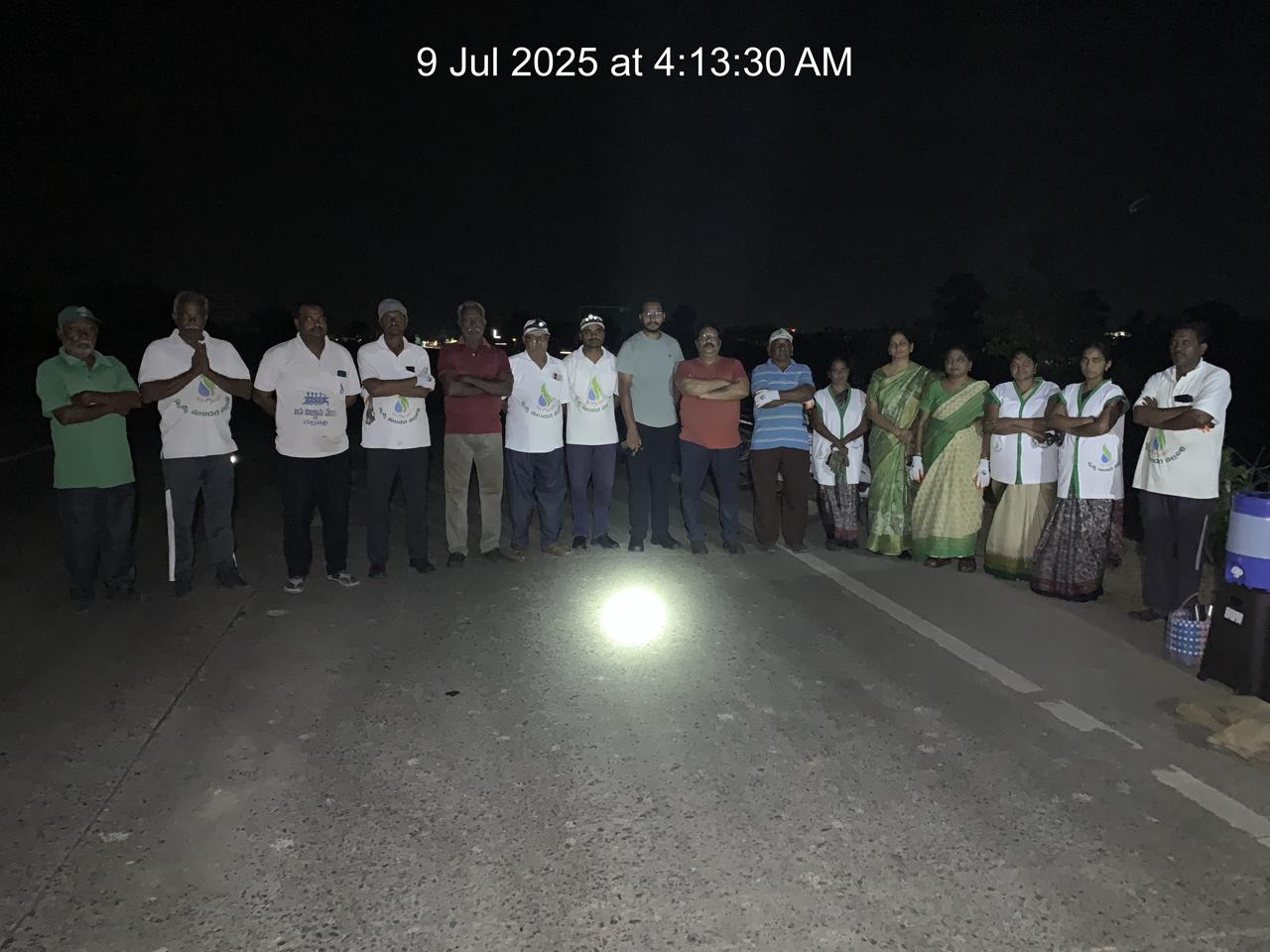 మేఘాలు కమ్మి వాన కురవని చల్లదనంలో మా పనికి ఇది అనువైన వాతావరణం అనుకుంటూ ఉత్సాహంతో వంచిన నడుములెత్తకుండా ఈ ఊరి కొరకు శ్రమిస్తున్న కార్యకర్తలు 6 గంటల వరకూ శ్రమించి విజిల్ మ్రోగిన తరువాత పనికి విరామమిచ్చి,