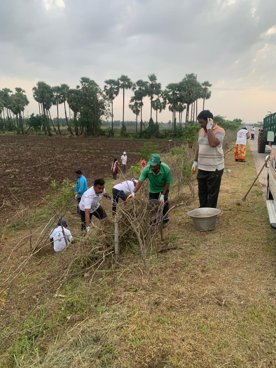 వేకువ జామున 4:17 నిమిషాలకే 9 మంది కార్యకర్తలు హైవే రోడ్డు వద్ద (క్లబ్ రోడ్ కు అతి సమీపంలో) సేవలకు ఉపక్రమించారు. రహదారి క్రింది భాగంలో పెద్ద మొక్కల చుట్టూ మరియు వేరు వేరు రకాలైన నానాజాతి లాంటి గడ్డి దట్టంగా పెరిగి, చూడడానికి అందవికారంగా ఉన్న గడ్డిని మొత్తం కొంతమంది కార్యకర్తలు మరియు గడ్డి కోయు యంత్రంతో ఒక కార్యకర్త శుభ్రపరిచారు. మరికొంత మంది గొర్రులతో ఎండిపోయిన ముళ్ళ కంపలను లాగి పనికి అడ్డం లేకుండా చేశారు.