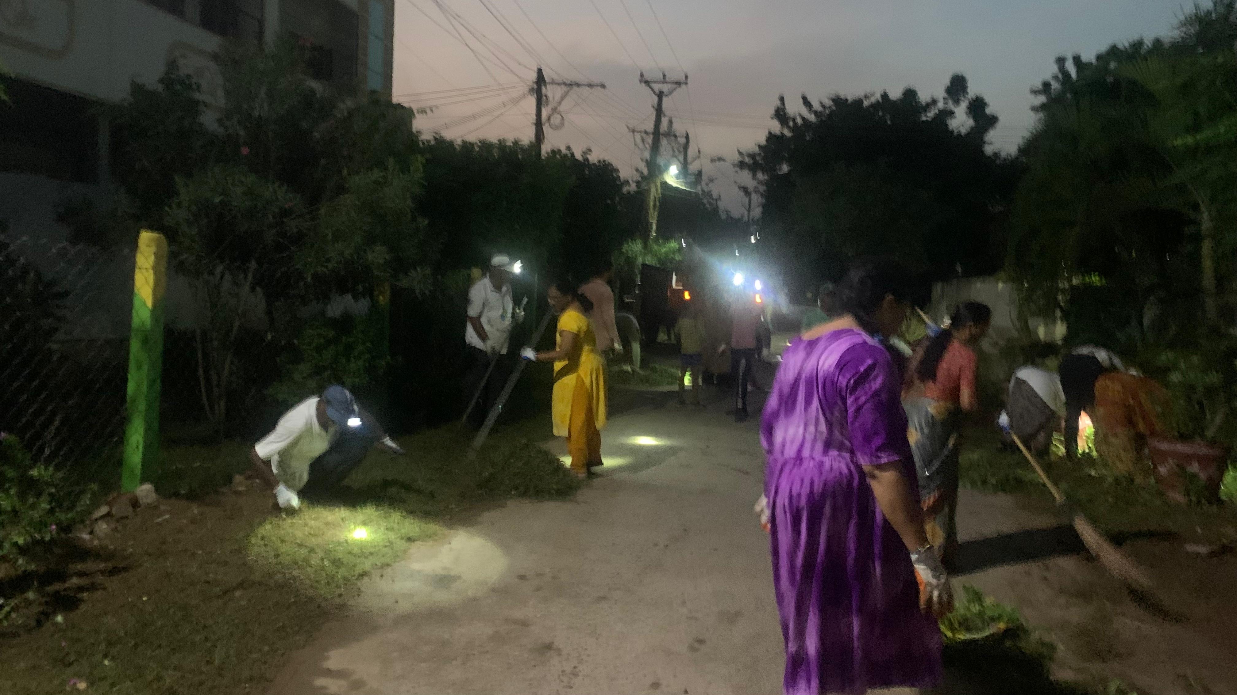 డ్రైన్ ప్రక్కనే ఉన్న గార్డెన్ కు బయట ప్రక్కన ఉన్న మాచర్ల కంప, గడ్డి, ఎండిపోయిన తుక్కును మొదలుకంట పెకలించి ఎంతో పరిశుభ్రంగా బాగుచేశారు. మహిళా కార్యకర్తలు ఆ ప్రాంతమంతా శుభ్రంగా ఊడ్చి వచ్చిన మట్టిని గార్డెన్ లో వేసి తుక్కును డిప్పలకెత్తి ట్రాక్టర్ లోకి లోడ్ చేశారు.