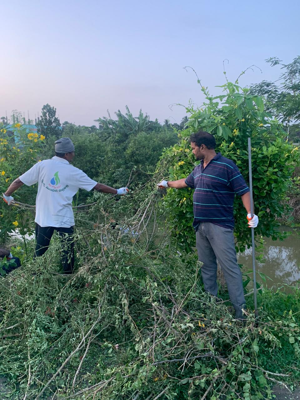 తెల్లవారుజాము 4.13 నిమిషాలకు 8 మంది కార్యకర్తలతో గంగులవారిపాలెం రోడ్డులో స్వచ్ఛ సేవ మొదలైంది. ఆ రోడ్ లో మురుగు కాలువ వైపు అస్తవ్యస్తంగా కొట్టిపడవేసిన చెట్ల కొమ్మలు, ఎండిన మొదళ్లు, ముళ్ళ పాదులు పెరిగి స్వచ్ఛ కార్యకర్తలు గత సంవత్సరం నాటిన మూమిడి మొక్కలకు అవరోధంగా ఉన్నాయి. వాటిని స్వచ్ఛ కార్యకర్తలు ఒక క్రమపద్ధతిలో నరికి ఎండిన కొమ్మలతో అంచు కట్టి మట్టి జారకుండా మరికొంత మార్జిన్ పెరిగే ప్రయత్నం చేస్తున్నారు.