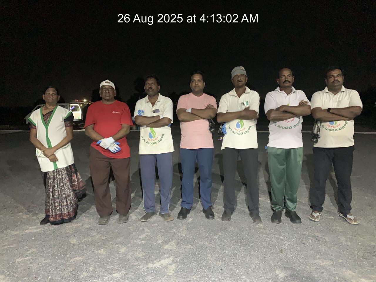 ఈరోజు తెల్లవారుజాము 4:13 నిమిషాలకు 8 మంది కార్యకర్తలు హైవేలోని “శారదా గ్రాండియర్” వద్ద కలుసుకుని మొదటి ఫోటో దిగి రోజు వారి పని ప్రారంభించారు.