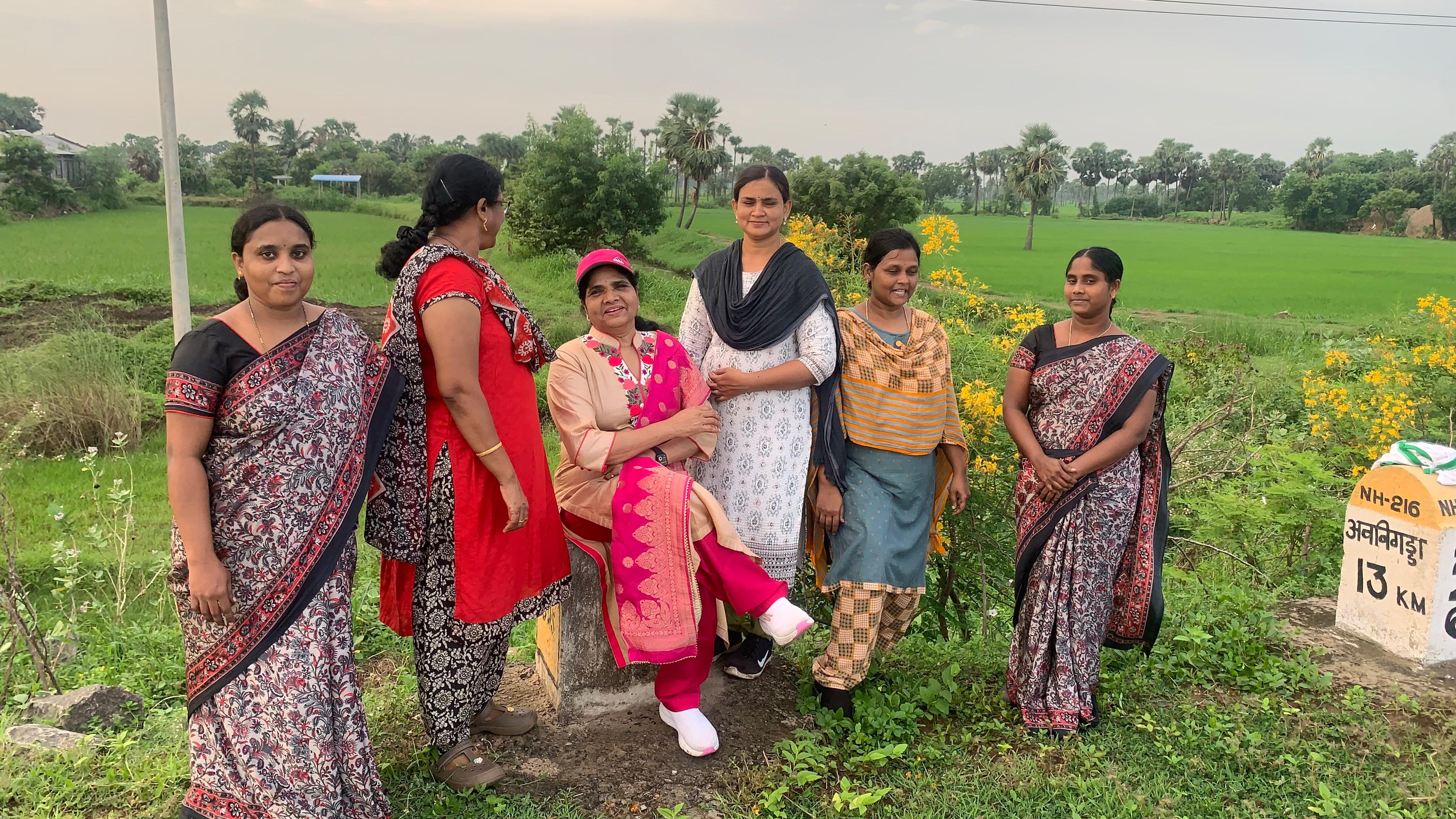 మహిళా కార్యకర్తలు రోడ్డు మార్జిన్ లో ఉన్న పిచ్చి మొక్కలు లాగుతూ రోడ్డంతా చీపుళ్లతో శుభ్రం చెయ్యడం చేస్తున్నారు.