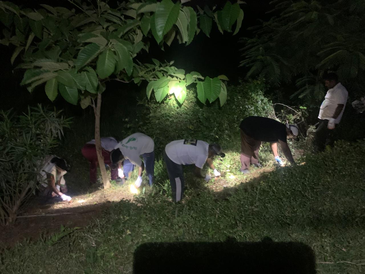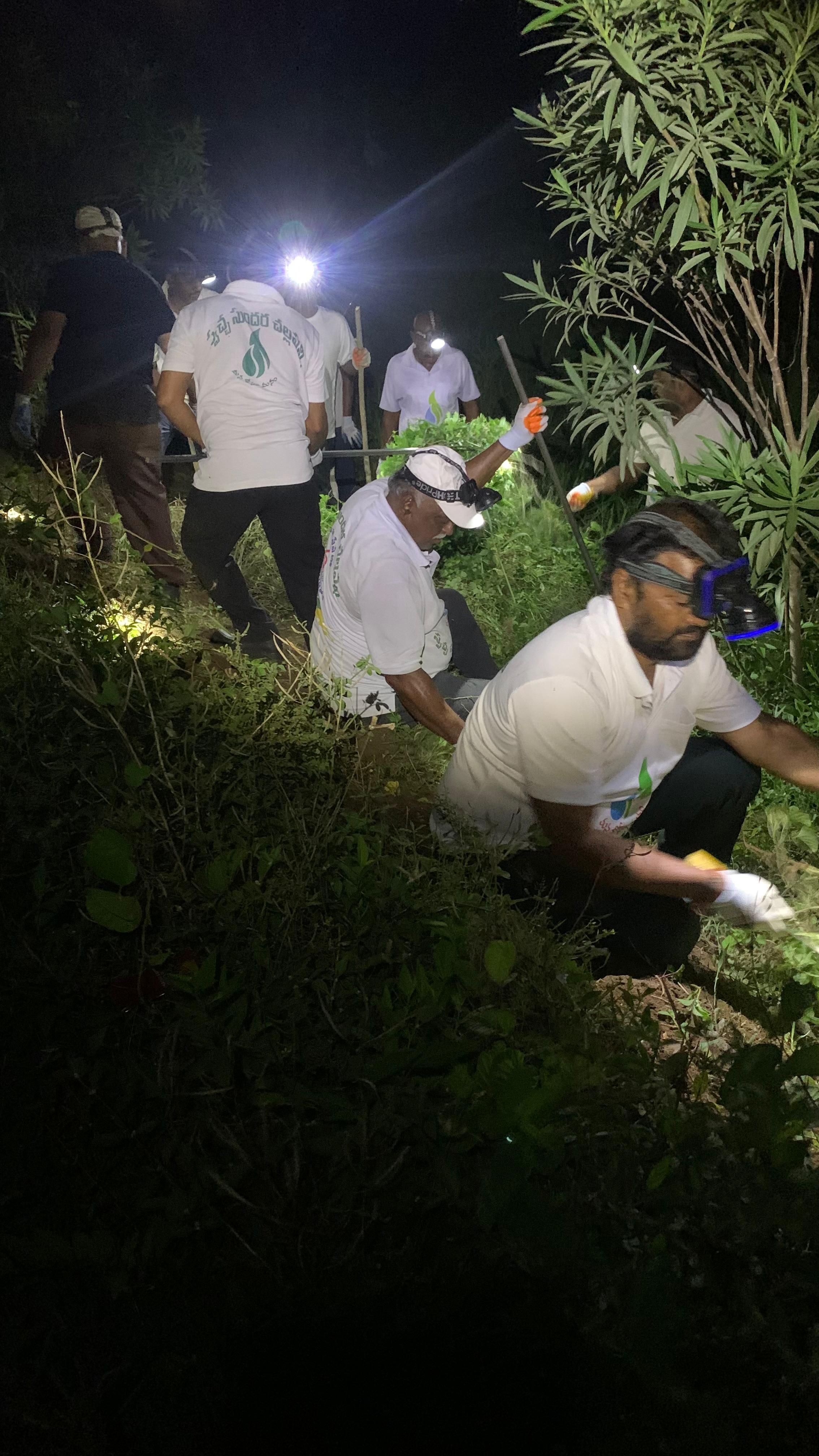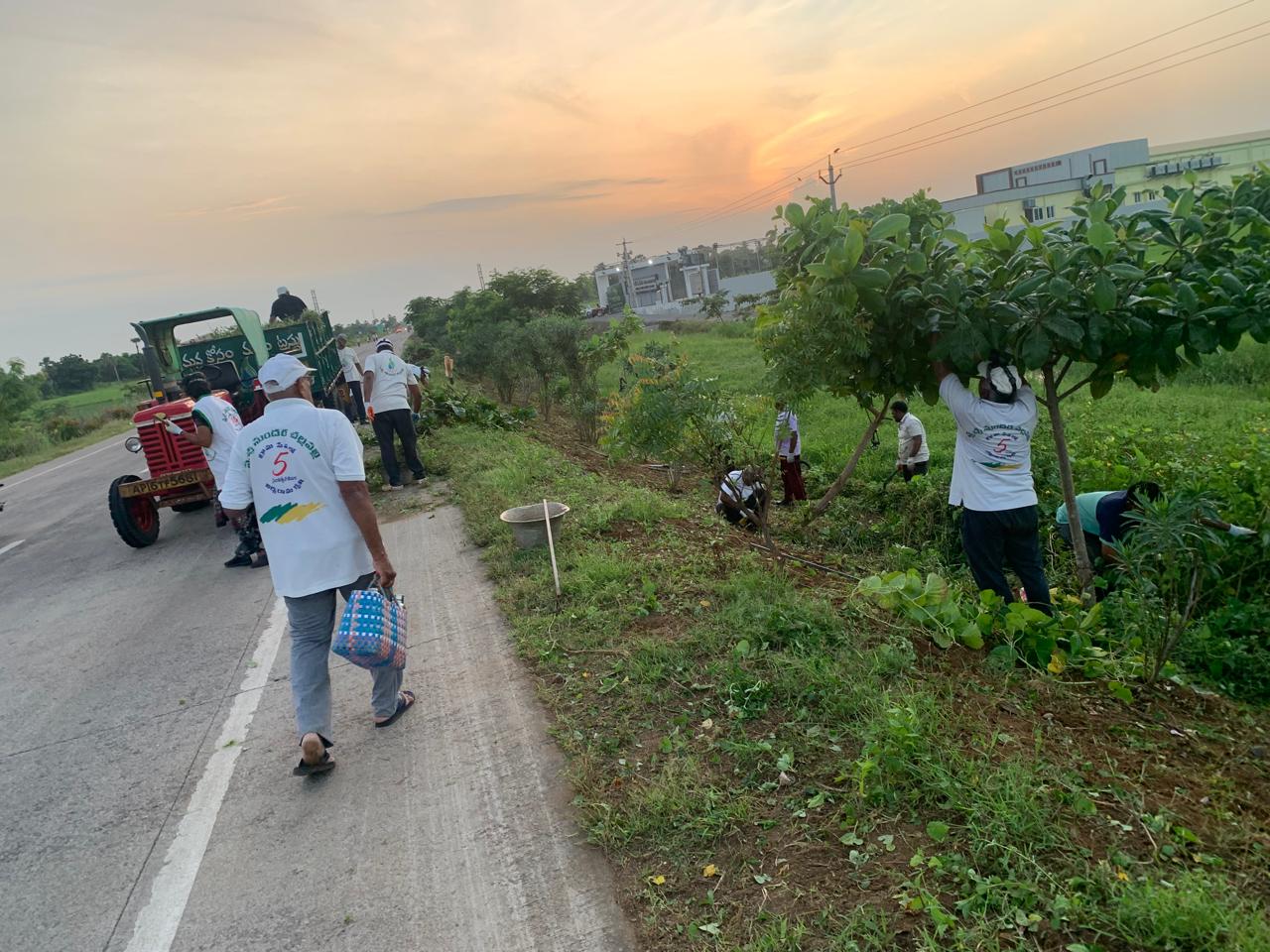 జాతీయ రహదారిపై శారదా గ్రాండియర్వద్ద తెల్లవారుజాము 4:15 నిమిషాలకు 10 మంది కార్యకర్తలు మొదటి ఫోటో అనంతరం పని ప్రారంభించారు. కార్యకర్తలు ఏడాది క్రితం నాటిన మొక్కలలో కలుపు ఏపుగా పెరిగి మొక్కలను కమ్మి వేసి చిట్టడవిని తలపిస్తుంది.