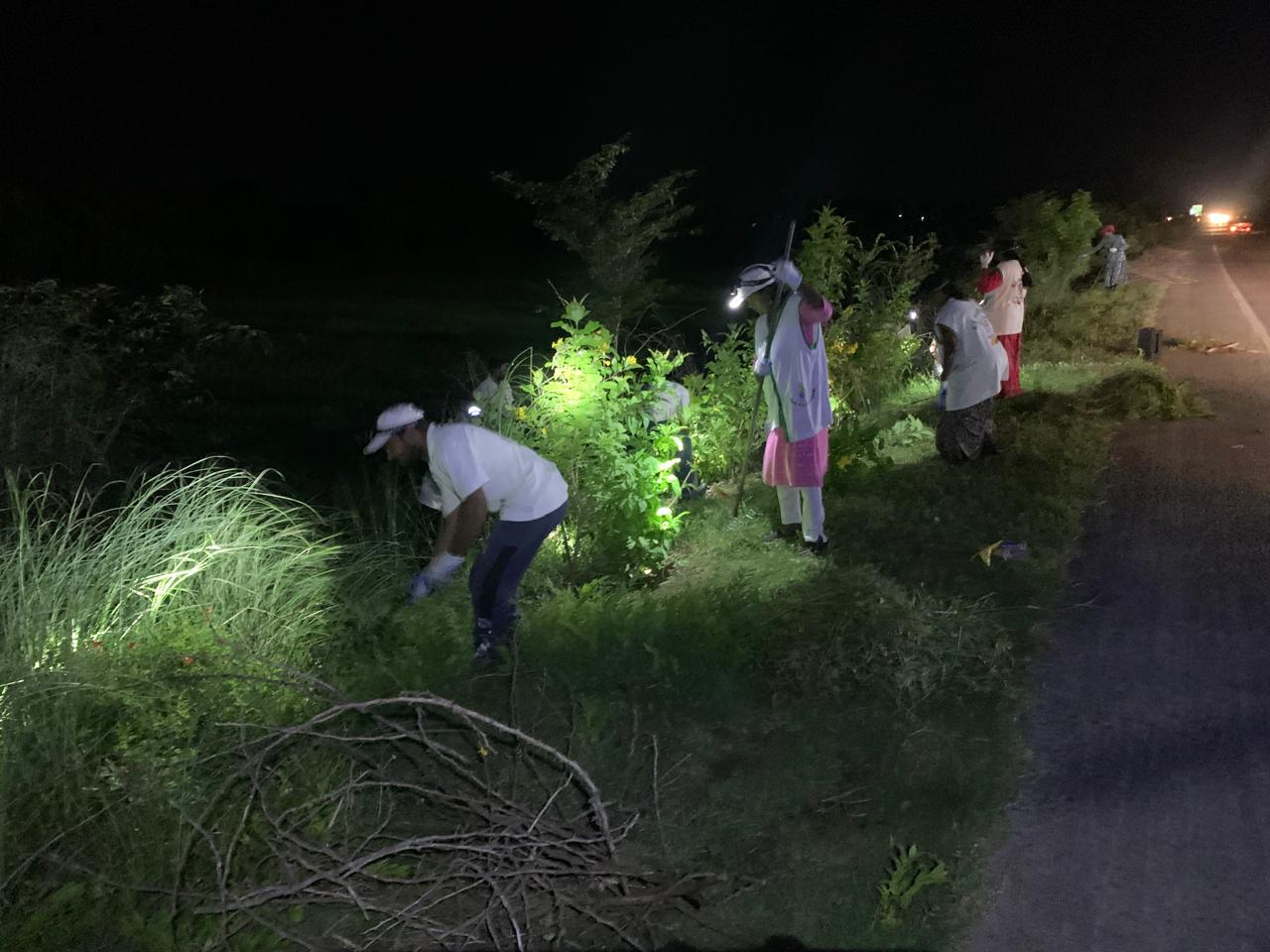 శారదా గ్రాండియర్ కు ఎదురుగా అనగా హైవే కు అవతలి వైపు సువర్ణ గన్నేరు మొక్కలలో నీడనిచ్చు మొక్కలలో, కొబ్బరి మొక్కలలో కలుపు ను ఏరి వేయడం, రెల్లు గడ్డిని వీటి మధ్యలో లేకుండా హతమార్చడం.