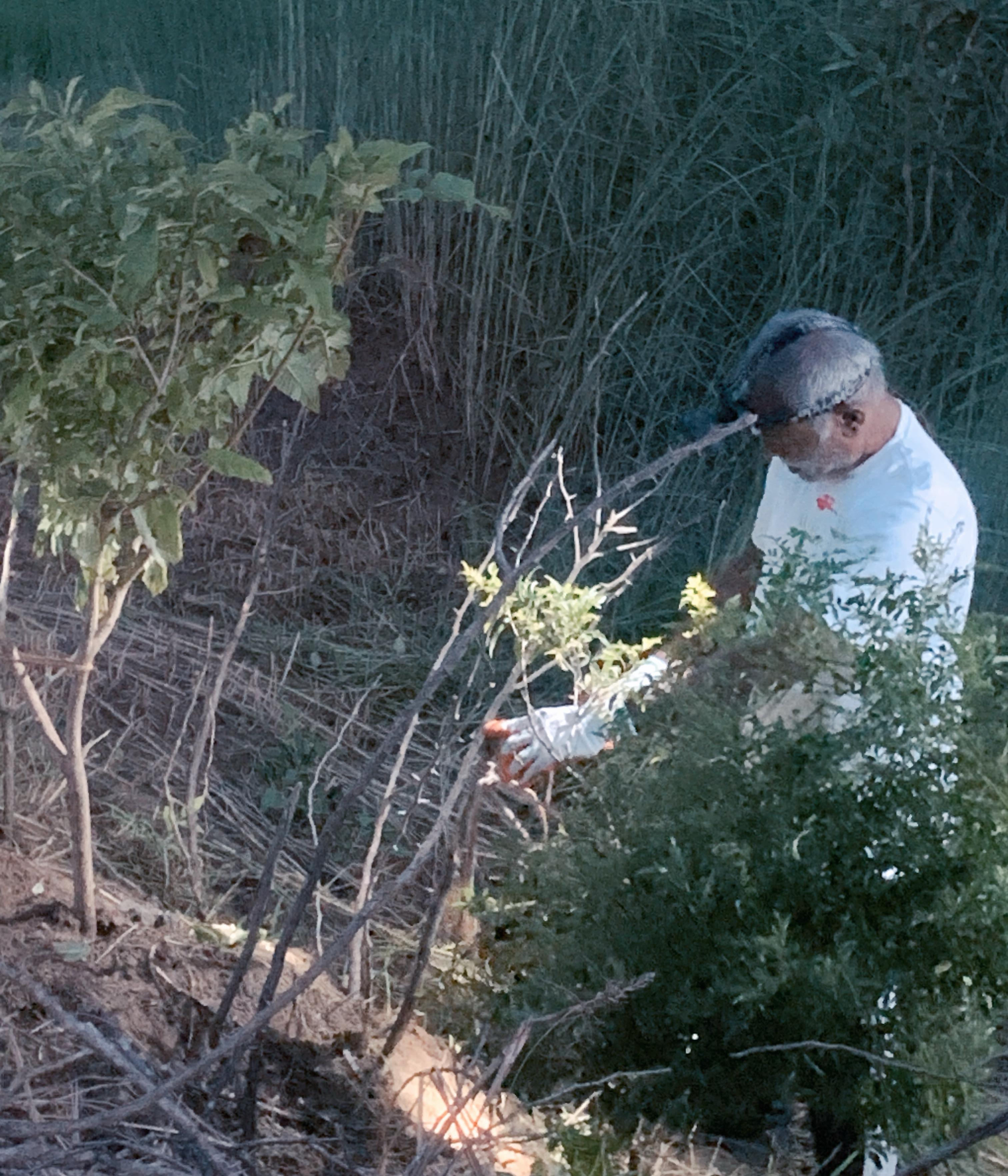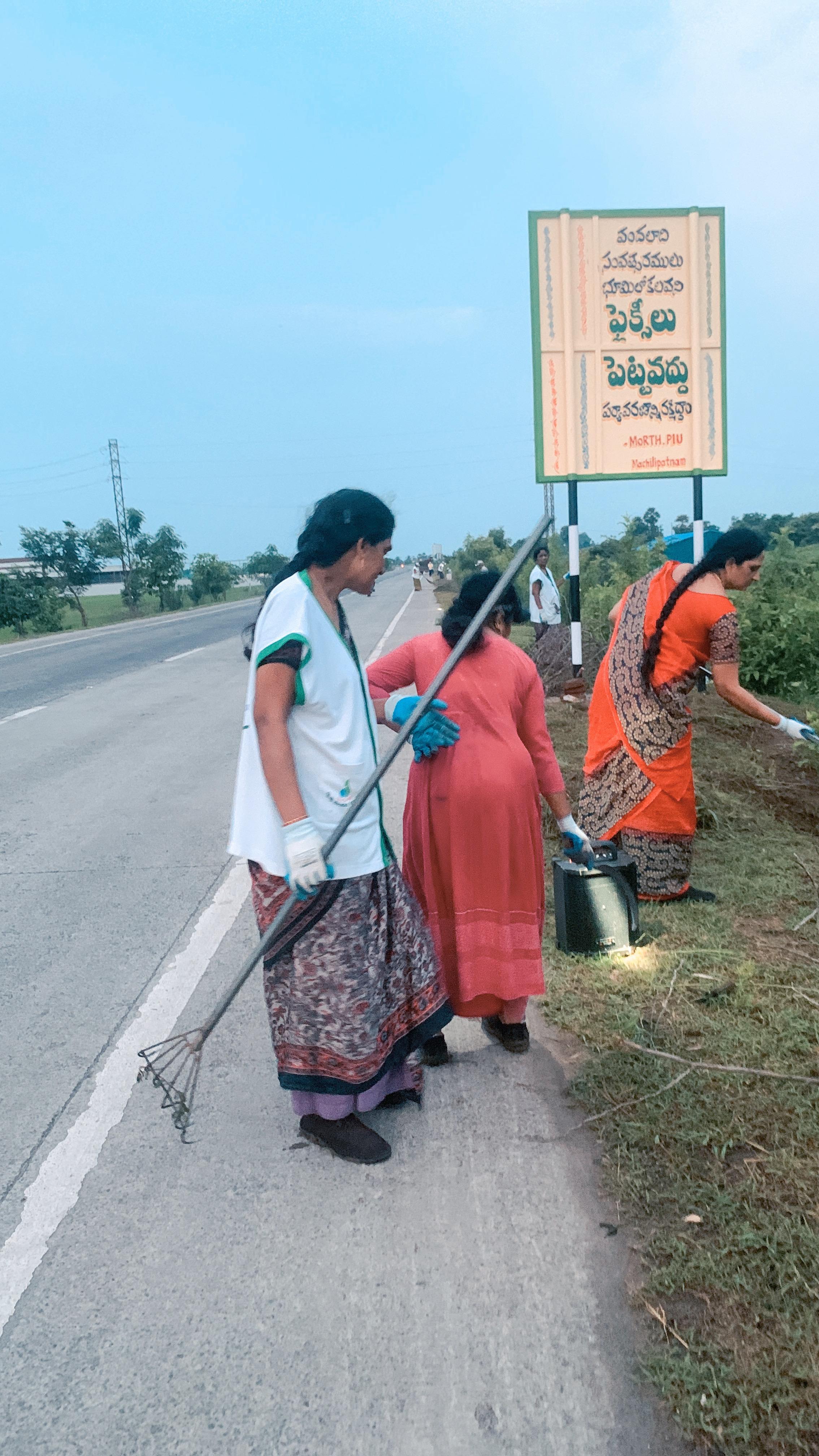 హైవేకు ఎడమ వైపు (బందరు వైపు) మిగిలిపోయిన దిగువ భాగం లోని కలుపు, పిచ్చి మొక్కలు, కాడ ఉన్నా సరే కష్టపడి మొత్తం తొలగించి మొక్కలకు గాలి, వెలుతురు, సూర్యరశ్మి అందే రక్షణా చర్యలు చాలా పకడ్బందీగా నిర్వహిస్తున్నారు.