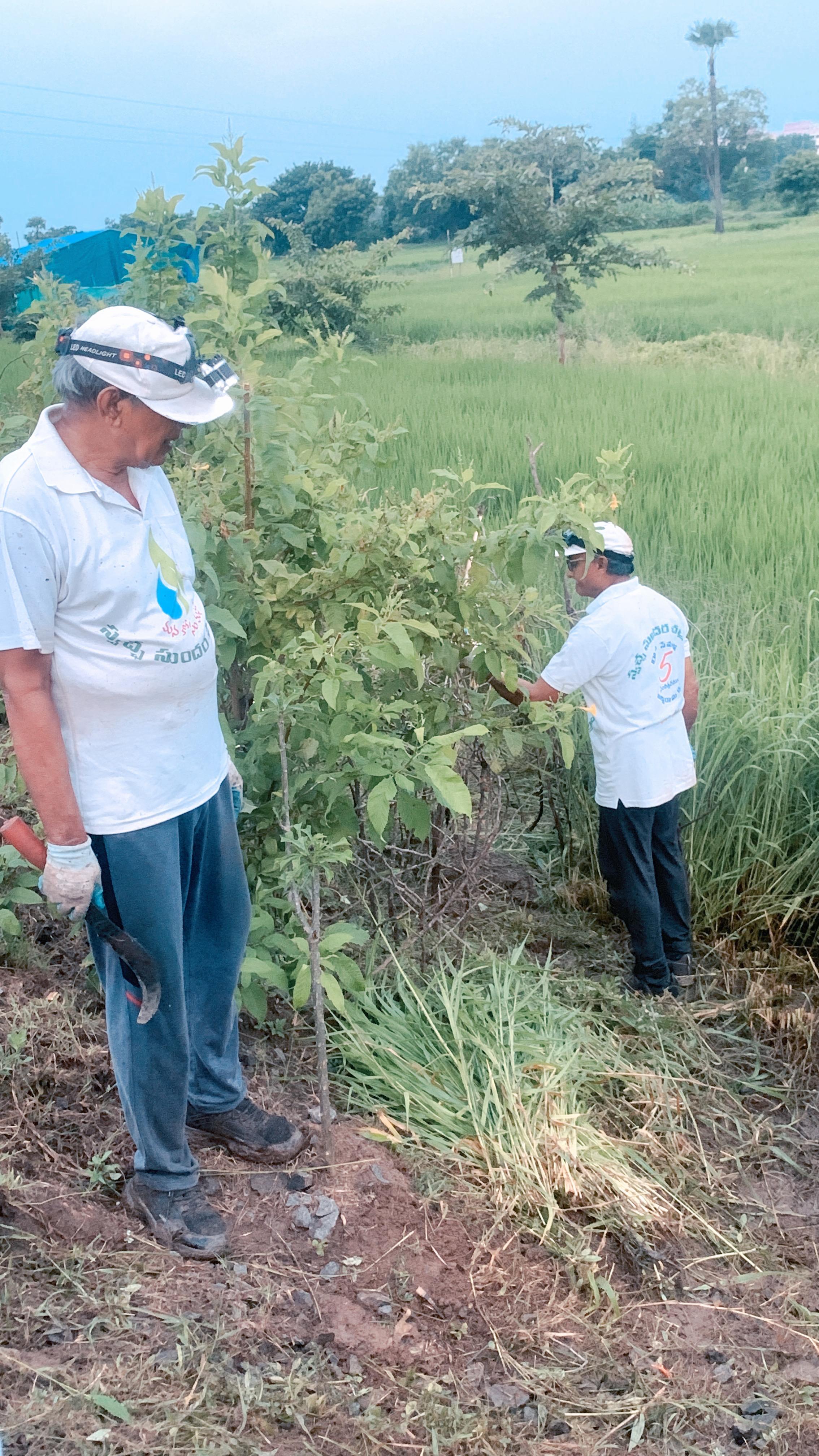 6 గురు కార్యకర్తలు మొక్కలకు రక్షణగా కంప కట్టడం, అవి వంగి పోకుండా కర్ర కట్టడం చేస్తున్నారు. ఒక మొక్క చెట్టు దశ సంతరించుకోవాలంటే ఎన్ని మార్పులో, ఎన్ని ప్రక్రియలో ఎంత కష్టం? కానీ స్వచ్ఛ చల్లపల్లి కార్యకర్తలు ఈ పదకొండేళ్లలో నాటిన ప్రతి మొక్కనూ కన్నబిడ్డ వలె కంటి రెప్పలా చూడబట్టి ఈరోజు చల్లపల్లి హరిత కాంతులీనుతుంది.