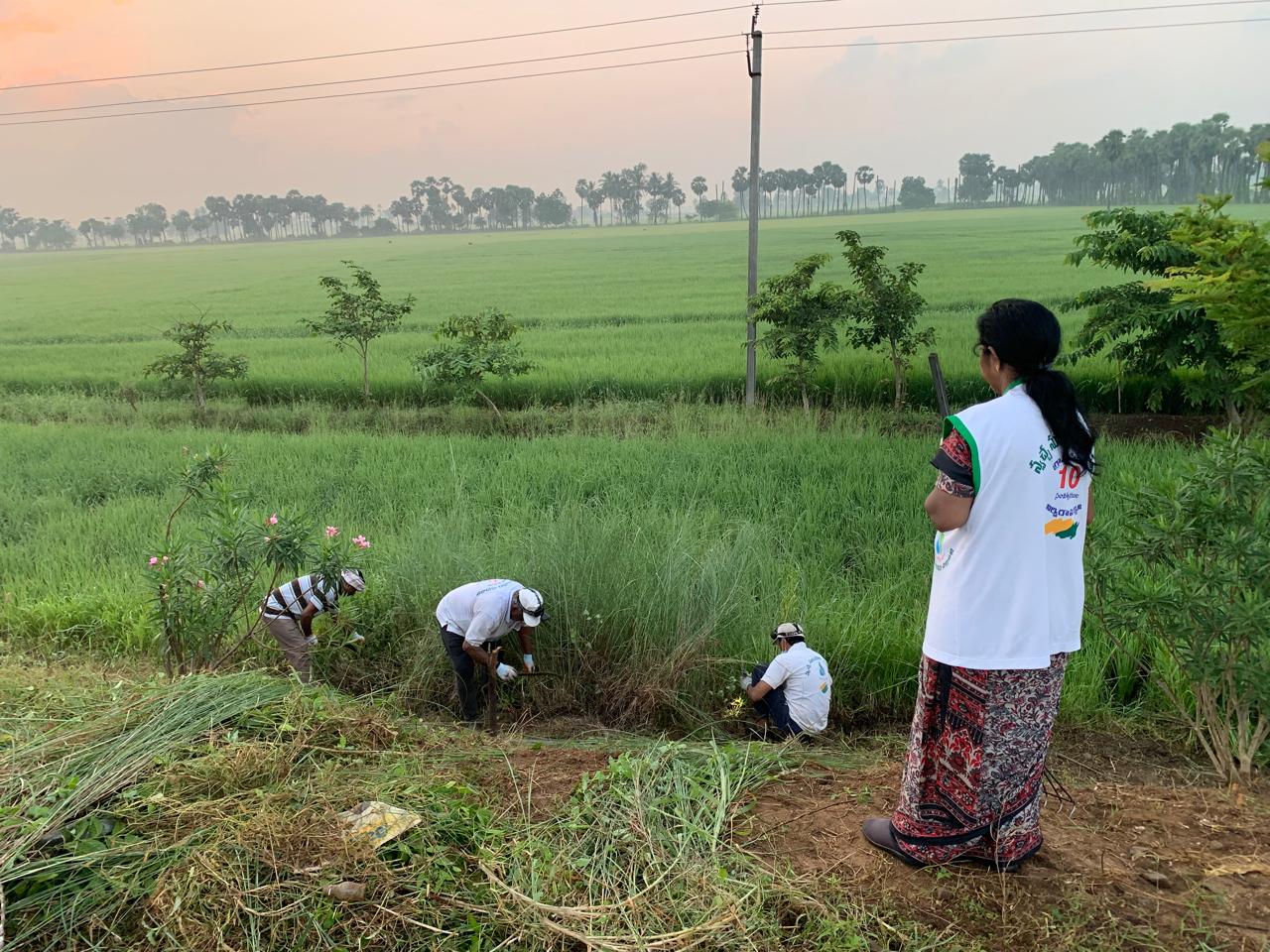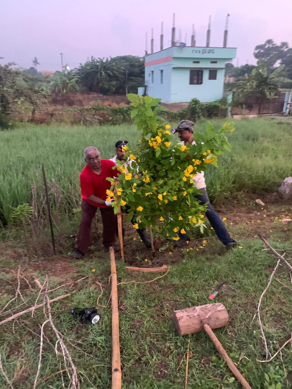 ఒక బృందం హైవే లోని రెండవ ప్రక్క (అవనిగడ్డ వైపు) సువర్ణ గన్నేరు మొక్కలకు చుట్టూ కంప కట్టి, కర్ర పాతి రక్షణగా ఏర్పాటు చేస్తున్నారు.