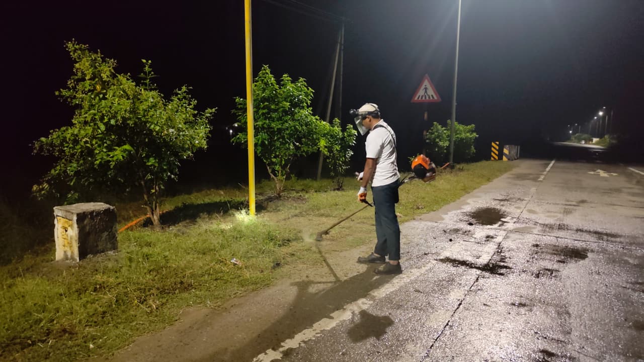 ఈరోజు ఇద్దరు కార్యకర్తలు రెండు మిషన్ లు స్టార్ట్ చేసి రెండు ప్రక్కలా మార్జిన్ లోని గడ్డిని కట్ చేయడం జరిగింది.