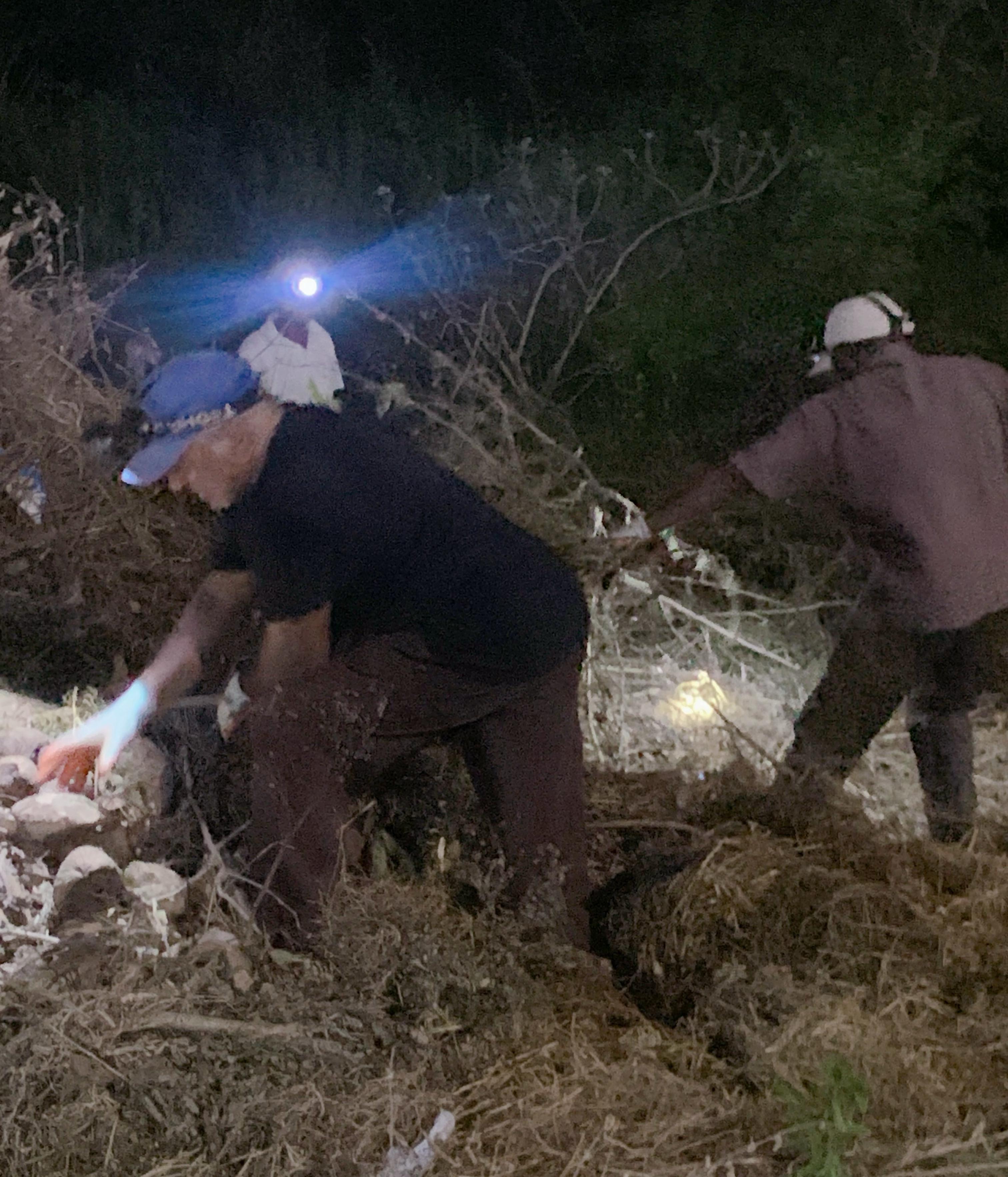 కొంతమంది కార్యకర్తలు కత్తులు చేతబట్టి గద్దగోరు మొక్కల చుట్టూ బాగు చెయ్యడం, అనగా కలుపు గడ్డి లేకుండా తీసివేయడం, అడ్డదిడ్డంగా పెరిగిన కొమ్మలను కత్తిరించుకొంటూ మొక్కలను చూడటానికి అందంగా తయారు చేస్తున్నారు. వీరు చేస్తున్న పనికి గాను వచ్చిన చెత్తా, తుక్కు కొమ్మల వ్యర్ధాలను మహిళా కార్యకర్తలు లోడింగ్ కు అనుకూలంగా ఉండే లాగున గుట్టలుగా పేర్చుతున్నారు.