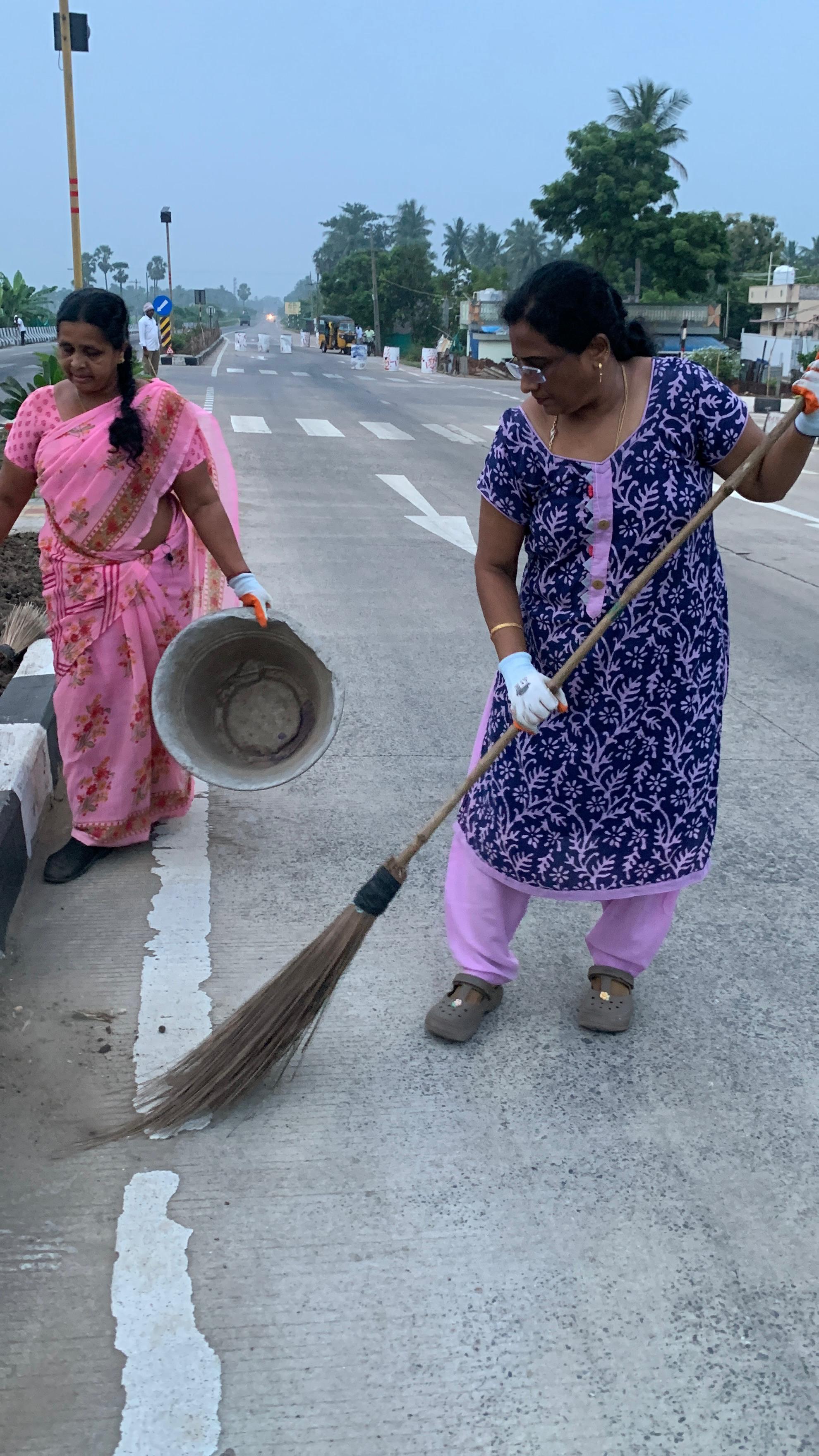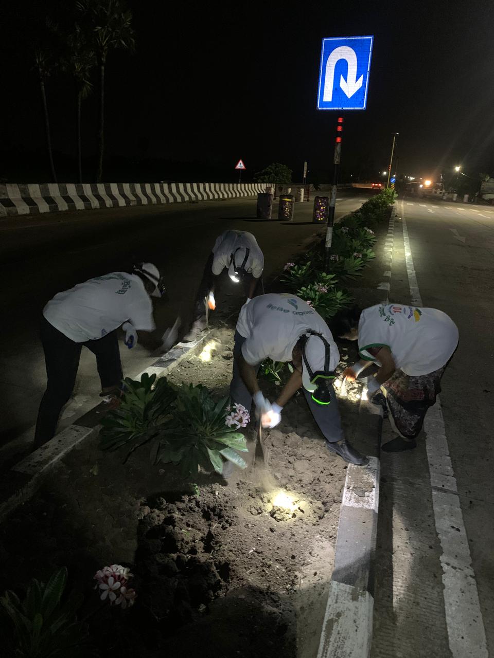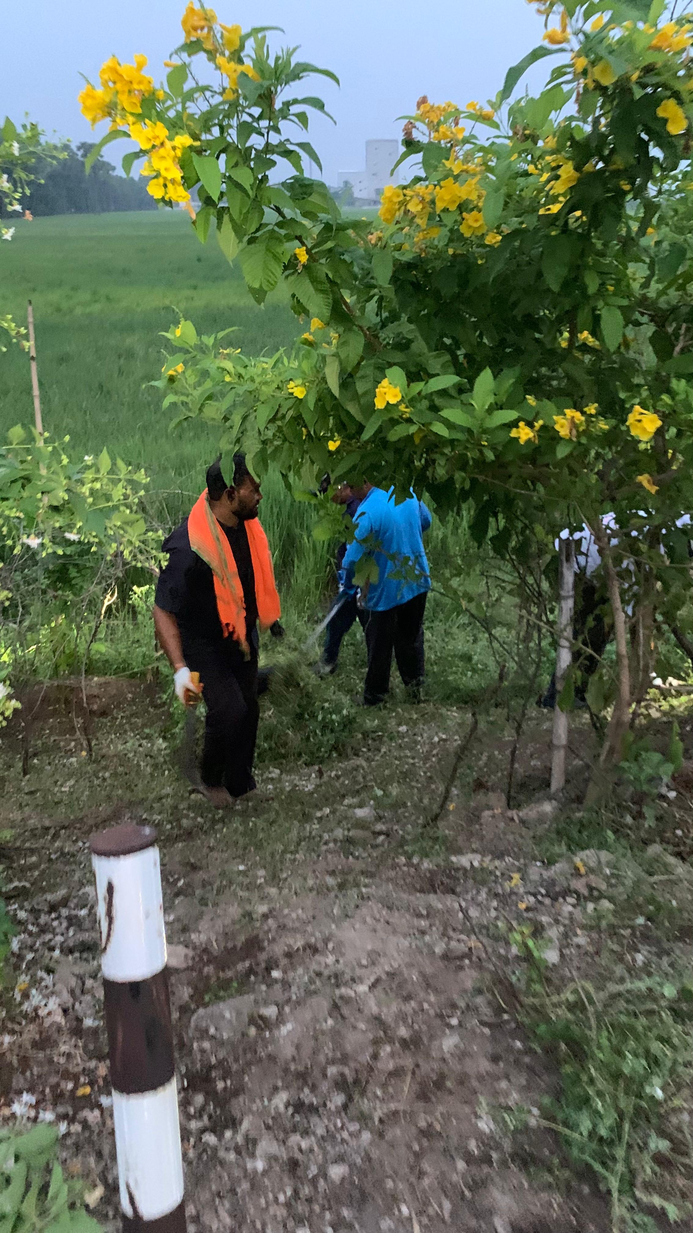 మరికొద్ది మంది కార్యకర్తలు రహదారి దిగువ భాగంలో మొక్కల మధ్యలో ఉన్న గడ్డిని, పిచ్చి మొక్కలను తొలగించారు. మొక్కలు గాలికి వంగిపోయి పడిపోకుండా కర్రలు పాతడం చేశారు.