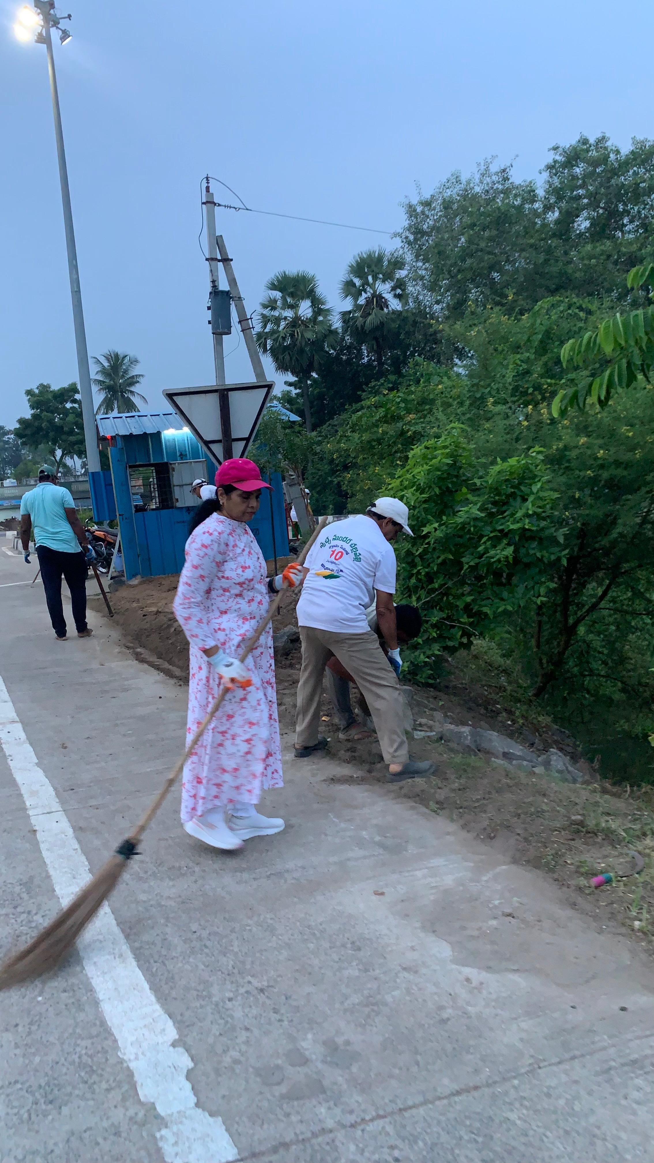కొంతమంది కార్యకర్తలు అక్కడక్కడా వంగిపోయిన నేరేడు, అలస్తేనియా మొక్కలను సరిచేసి కట్టారు. వాలిపోయిన అడ్డుగా ఉన్న అలస్తేనియా కొమ్మలను కొట్టడం జరిగింది. సచివాలయం సిబ్బంది కూడా ఈరోజు  కార్యక్రమంలో పాల్గొని చీపుళ్ళతో శుభ్రం చేశారు.